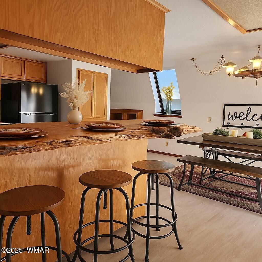 Welcome to your storybook cottage in the forest! Nestled among towering pines, this 1,598 sq. ft. 3-bedroom, 2-bath home offers a rare blend of character, space, and comfort. With its striking A-frame architecture and vibrant green metal roof, this property captures that cozy mountain charm while offering a practical floorplan for everyday living. Inside, you'll find soaring ceilings with exposed beams, a light-filled living room anchored by a rustic stone hearth and wood stove, and fresh new flooring and finishes that make the home feel move-in ready. The floorplan is unique"”adding to the home's charm"”and offers plenty of nooks and spaces to make your own, whether you need a home office, reading loft, or creative studio. The kitchen and dining area look out through walls of windows to the surrounding forest, making every meal feel like a cabin getaway. Three bedrooms and two baths ensure there's space for everyone, while the attached garage adds convenience. Step outside and you'll be greeted by cool mountain breezes, birdsong, and a true sense of retreat. The large lot is level, treed, and privateperfect for stargazing, gathering around a firepit, or simply enjoying the peace of the outdoors. Whether you're looking for a year-round home, a weekend getaway, or a cottage in the woods to make your own, this unique property is a clean, refreshed canvas ready for your mountain story.
