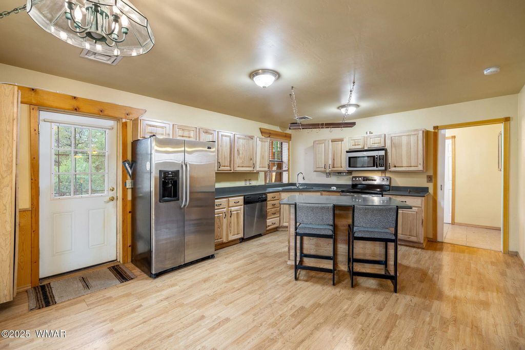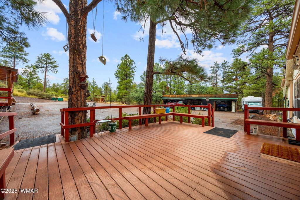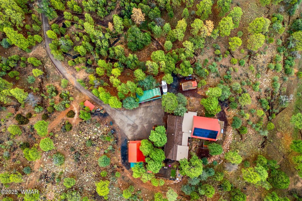 MOTIVATED SELLERS! Charming Custom Retreat in Linden - Endless Possibilities Nestled just west of Show Low in the desirable community of Linden, this one-of-a-kind property is a rare opportunity under A-General zoning"”perfect for a business venture, multi-generational living, or a private retreat. The main level features 5 bedrooms, 3 baths, an office, butler's pantry, and spacious kitchen with large dining area. A see-through fireplace adds cozy charm, while a 1,200 sq. ft. bonus room with wall-to-wall windows and a screened-in porch offers stunning White Mountain views. The lower level includes separate living quarters with 2 bedrooms, a bath, and work area, ideal for guests or rental income. Outside, enjoy a fenced garden, 4-car carport with storage, and an additional workshop. Wit easy highway access and serene privacy, this retreat combines convenience, charm, and unlimited potential. Solar can be paid off at closing! Truly a must-see property!