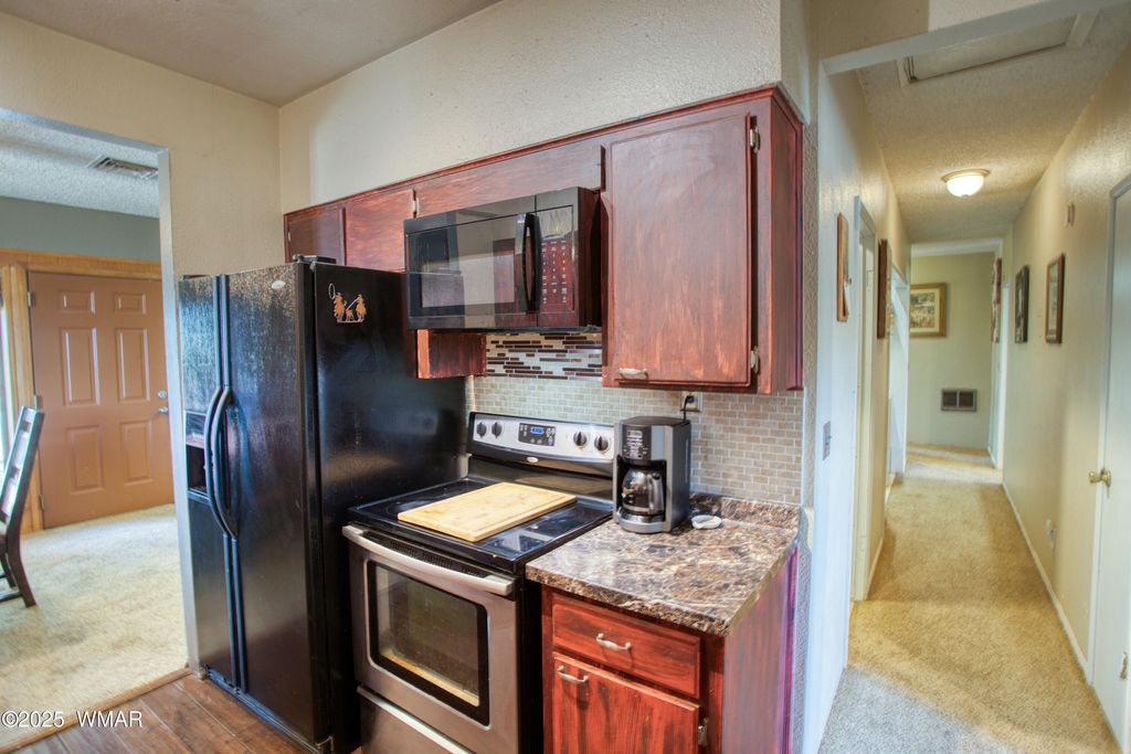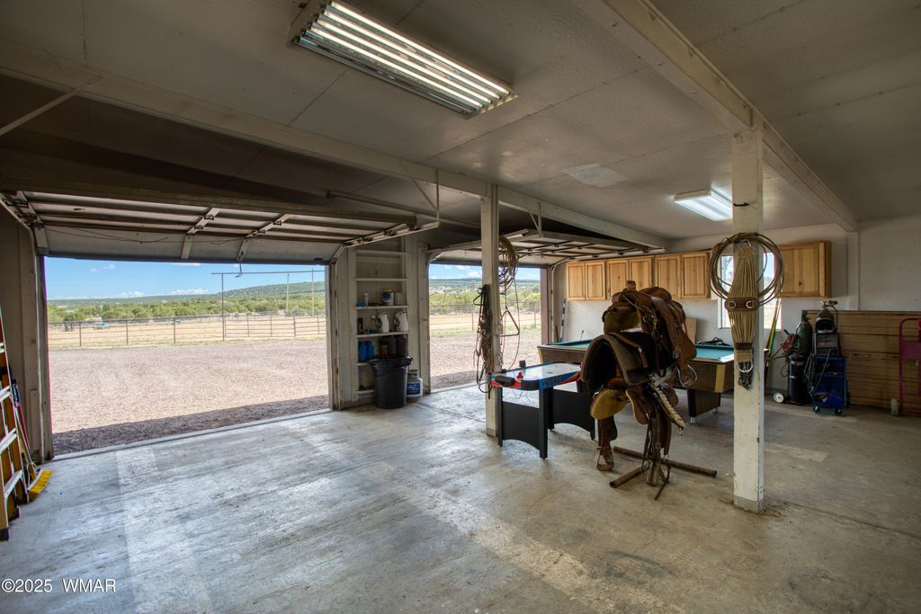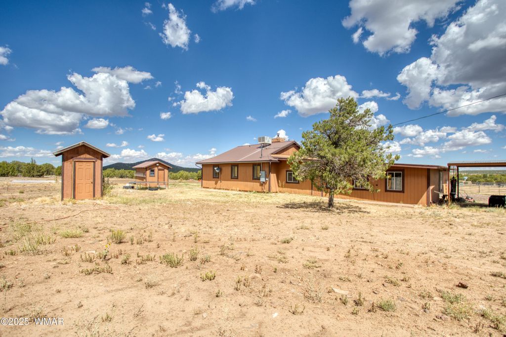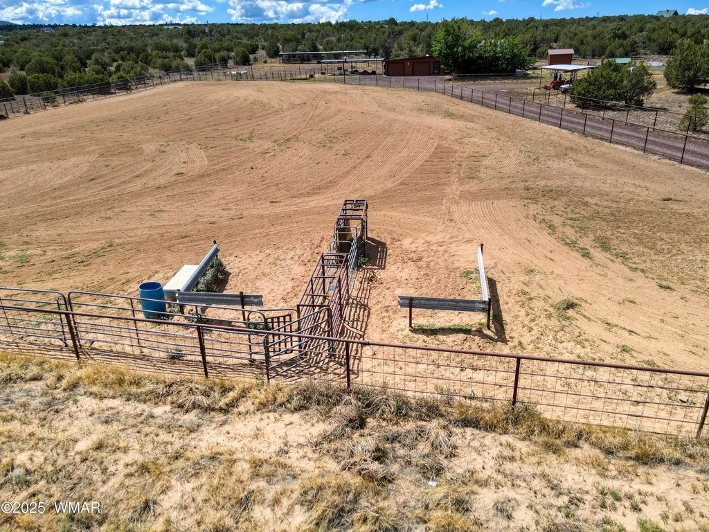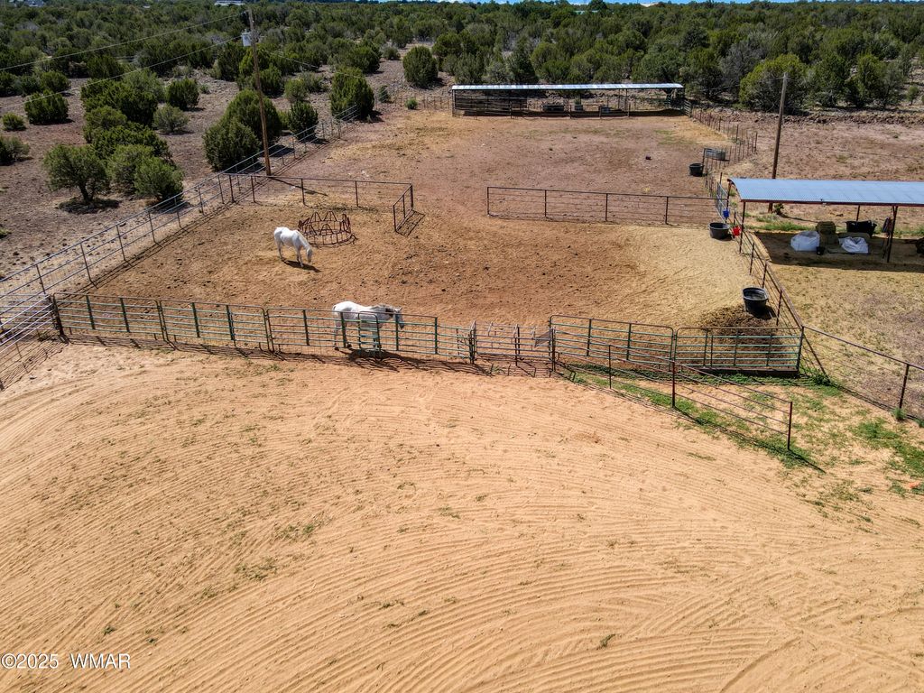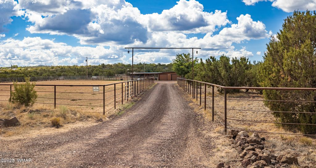 Welcome to Northfork Ranches by ''The Y,'' just 15 minutes from downtown Show Low! This rare 7.25-acre horse property offers the perfect blend of country living, modern convenience, and equestrian amenities. A gated entry welcomes you into the property, where you'll find an oversized riding arena complete with a roping chute, two corrals, and four covered stalls, making this an ideal setup for horse lovers and ropers alike. The acreage is partially fenced, with plenty of space for additional animals, trailers, or future improvements. The home features three bedrooms and a potential 4th bedroom/office, a warm and inviting living area filled with natural light and country-style accents. A cozy wood stove, open dining area, and large windows create a welcoming space to gather. The kitchen offers ample storage including a large pantry for food storage and supplies. Other special features include new carpet and a new metal roof. Step outside to a relaxing covered front porch with panoramic views of the surrounding landscape, the perfect place to unwind after a long day. Additional property highlights include an oversized two-car garage, two covered carports, a private well with well house, and easy access to Highway 60. Within close proximity to National Forest, one can saddle up or take an ATV ride directly from the property and to NF access at the back of the subdivision. Whether you're looking for a full-time homestead, a recreational getaway, or the ultimate horse property, this Northfork Ranches retreat is ready to welcome its next owners.