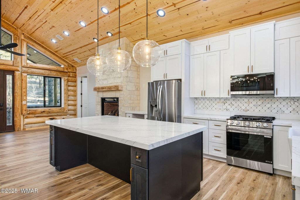 This is the mountain log cabin you have been searching for in the most desirable location. Perfectly placed within The Preserve, a private gated community, this brand new home offers refined craftsmanship and timeless mountain charm. Soaring vaulted ceilings, elegant tiled showers, quartz countertops throughout, premium gas appliances, a gas tankless water heater, central heat, and forced air create a home where comfort meets sophistication. An oversized two car garage provides ample space, while the expansive covered back deck frames breathtaking views of the tall pines that surround the property. The thoughtfully designed split bedroom floor plan ensures privacy for the owner's retreat. The primary suite showcases a spa-like bathroom with a double sink vanity and a spacious walk in hower, offering both elegance and function. The greatest luxury of all is its location. The White Mountains offer four distinct seasons of recreation. Enjoy fresh mountain air and the scent of pine while exploring endless trails, spend afternoons kayaking on pristine lakes, and delight in skiing fresh powder when winter arrives. Completion is anticipated for October 2025. This is more than a home, it is a lifestyle of mountain luxury.