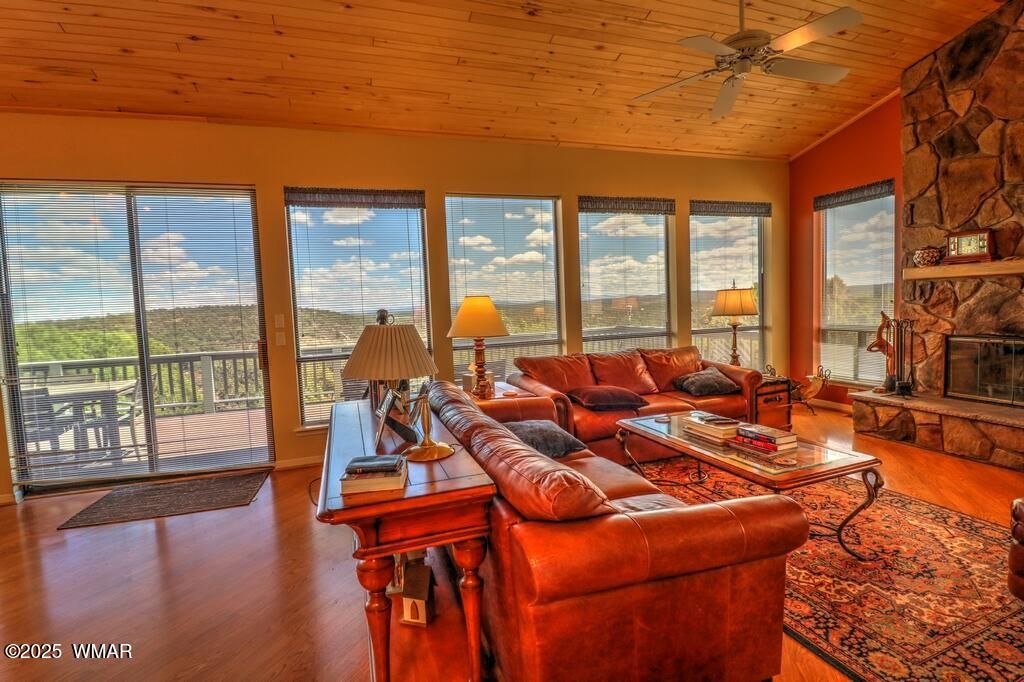 Come for the views! Stay for the solitude. 19.5 acres of your own hilltop oasis. The panoramic views extend from the east, to the south, and the west. Well maintained property which is fully fenced. Private well, Generac backup generator, and most of the furnishings stay with the home. One bedroom and one bath on the main level with kitchen and great room. The lower level, walk-out basement boasts 3 bedrooms, full bath and a utility room and game room. Front and rear decks to watch the storms roll in or just enjoy the scenery.