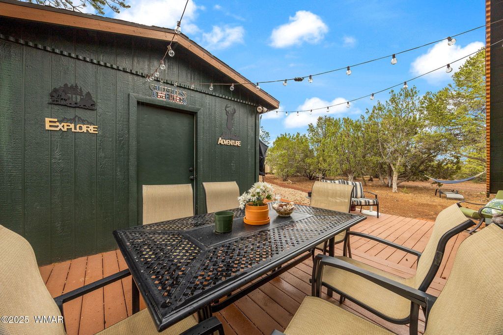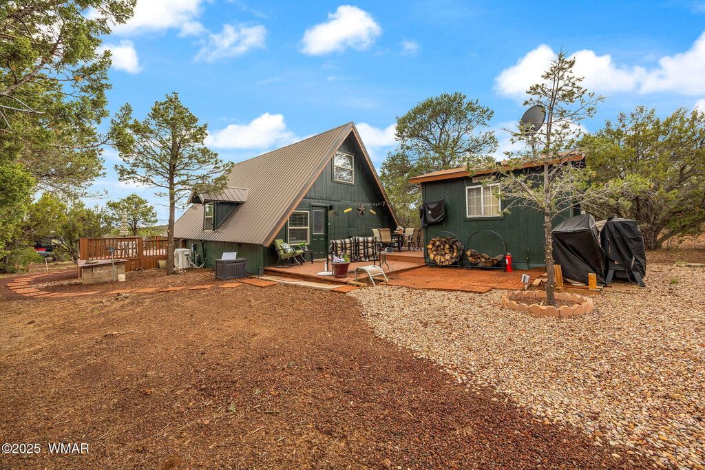 This charming A-frame home offers 2 bedrooms and 1 bathroom, situated on a spacious 2.34-acre treed lot that provides plenty of privacy and natural beauty. The property includes a large two-car carport, a separate laundry building, a utility shed, and a toolshed for all your storage needs. There's also a versatile man cave/she shed, perfect for hobbies, a workshop, or extra space to unwind. The home features RV parking with a convenient pull-through driveway, and there's ample room for horses or other livestock. Enjoy relaxing on the front and back decks while taking in the peaceful surroundings of this unique and functional property. This home is available to be sold furnished or unfurnished.