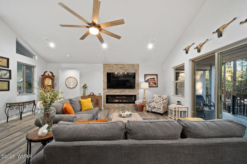Stunning 3-Year-Old Home in The Shores at Rainbow Lake - Lakeside, AZ Welcome to your dream home in the prestigious gated community of The Shores, nestled in the beautiful White Mountains. Enjoy cool summers, snowy winters, and year-round outdoor adventures with skiing, lakes, and national forests just minutes away. PARTIALLY FURNISHED single-level, 3bd, 2-bath home offers a thoughtfully designed split floor plan with soaring pines all around. Features You'll Love: "¢ Built in 2022, like new condition "¢ Durable metal roof & Hardyboard siding "¢ Low-maintenance artificial turf front yard with paver driveway & walkways/professional landscaping "¢ Spacious covered back deck perfect for entertaining "¢ Open-concept living with large windows & abundant natural light " Beautiful laminate flooring throughout " Elegant electric fireplace with stone surround " Gourmet kitchen with modern finishes " Large Walk-in Pantry " Luxurious master suite featuring: " Double vanity with LED backlit mirrors " Walk-in shower + private water closet " Large walk-in closet Prime Location: " Next to Rainbow Lake " Minutes from restaurants, shopping & hospital " Surrounded by national forest, trails, and outdoor recreation This home combines mountain living with modern elegance in one of the area's most sought-after communities.