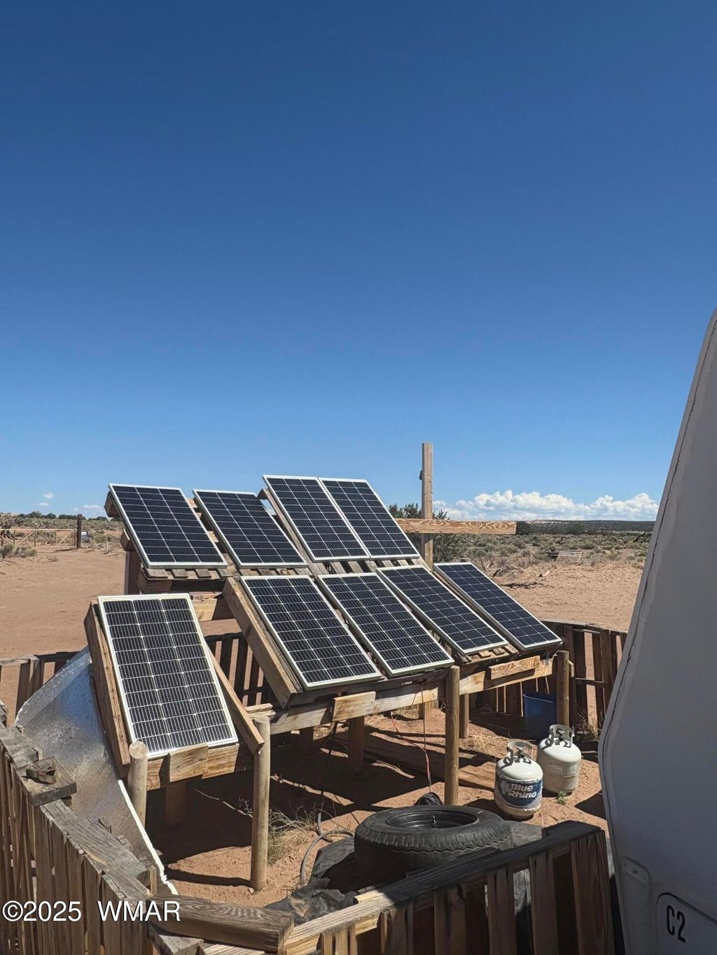 Ready to live off grid! Get a fresh start with this 37 plus AC! Land has two fenced pastures, permitted septic, greenhouse with solar power, RV will convey at now cost, RV is hooked up to ample solar and septic. Fire pit to enjoy to desert evening. Gated driveway. Views in all directions. US State land to the on the Western boarder. Great for summer get away or start your off gird dream, right here!