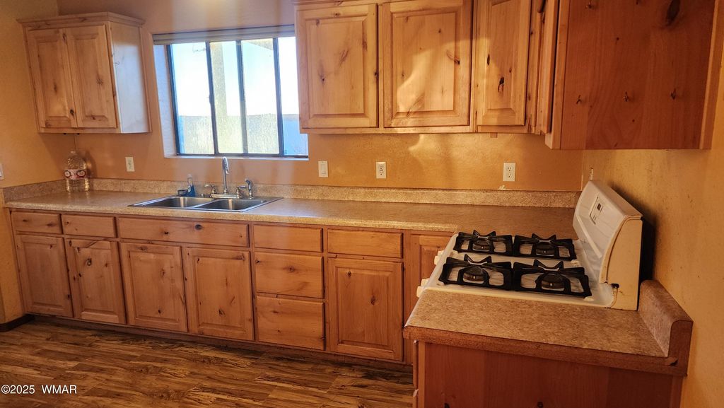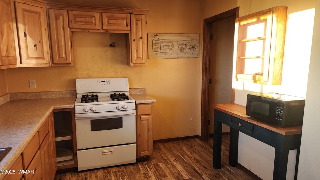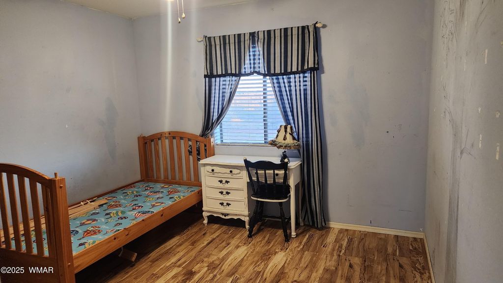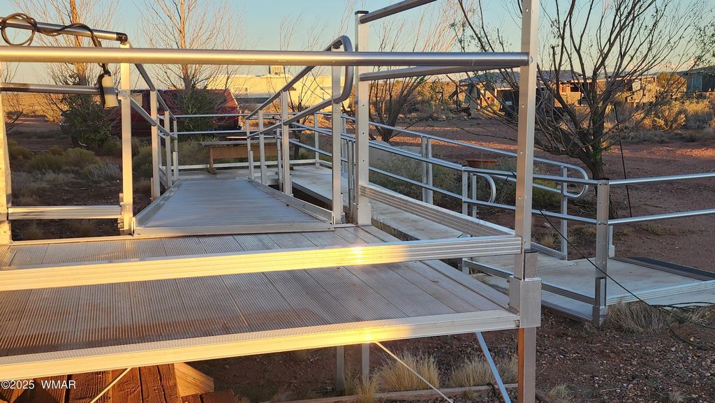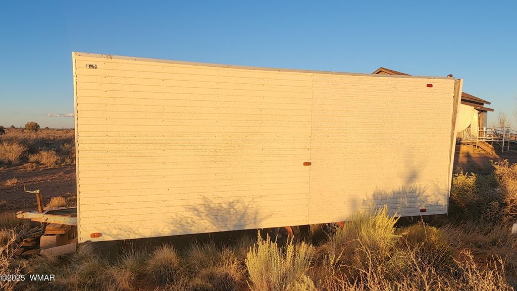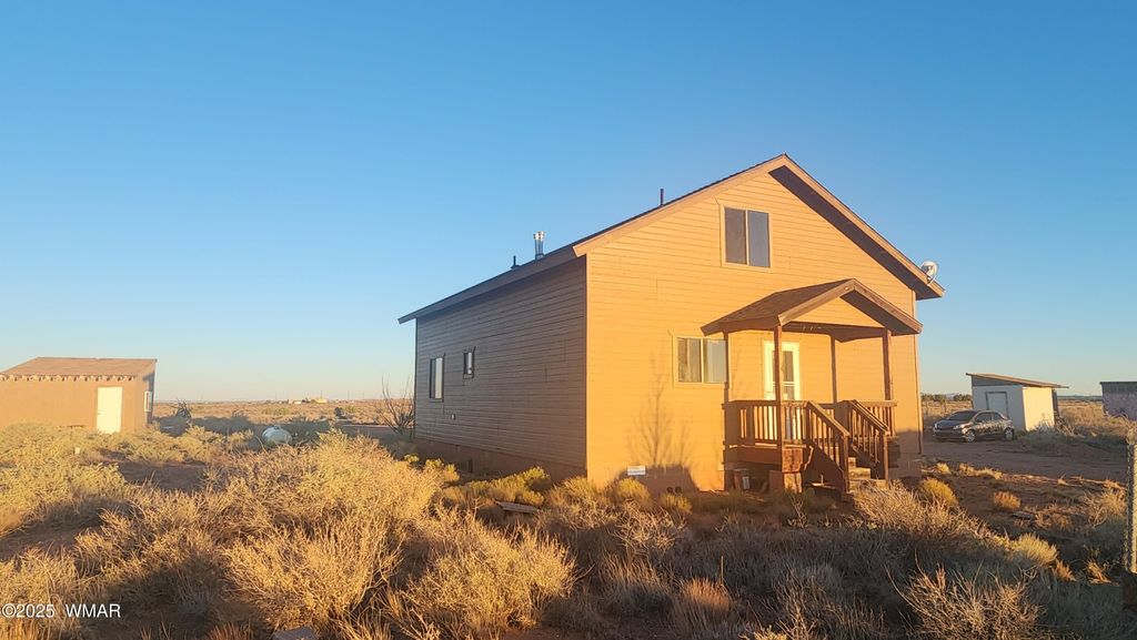 Excellent access to this fully fenced property, paved all the way except for the last quarter mile, which is a good dirt road. Very pleasant two story home with wood laminate flooring and plenty of storage has two bedrooms and two bathrooms downstairs, with a large playroom, den, or media room and a third bedroom upstairs. The home is served by a private well with a large storage tank, APS power, and a septic. There's a top quality entry ramp, multiple storage buildings and animal pens, and a greenhouse. Priced to sell! The square footage of the home that's mentioned on the county site is for the footprint of the home, and doesn't include the upstairs. Buyer to measure to confirm square footage, as desired.