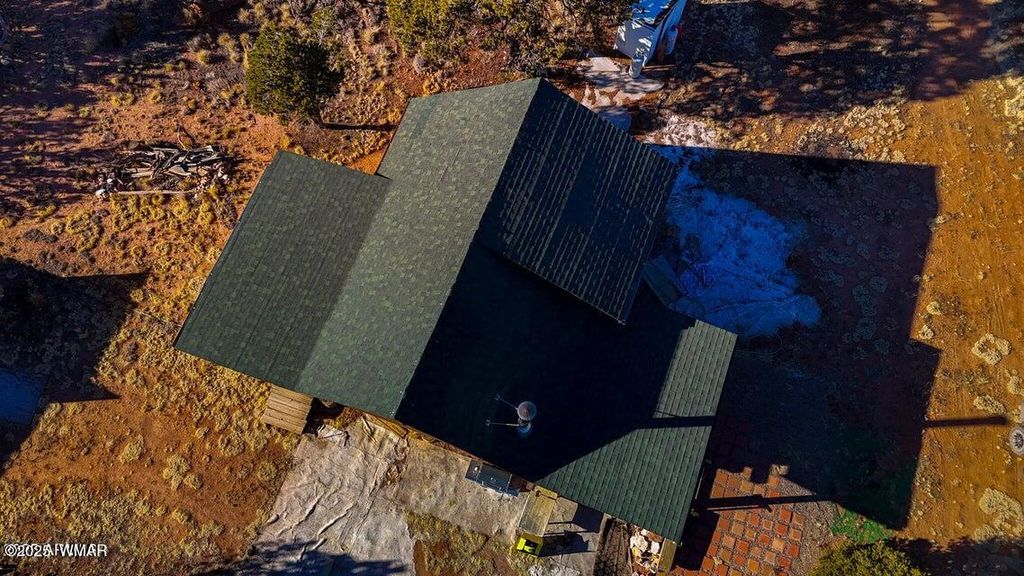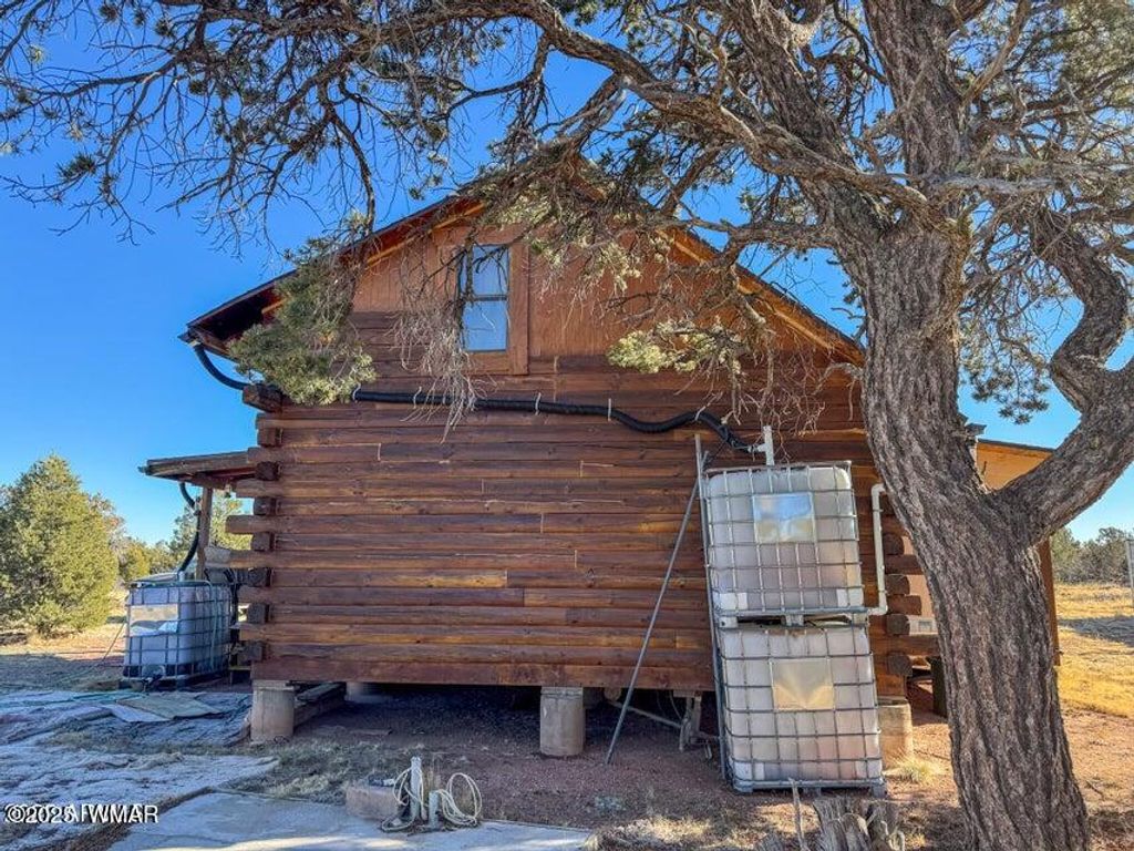 Built in 2007, this off-grid cabin is the perfect weekend hideaway or peaceful retreat. Arizona State Trust Land sits just one parcel to the north, offering privacy and open views. The 710 sq ft cabin features a full kitchen, living and dining area, bedroom, bathroom, and a loft bedroom upstairs. Power comes from solar panels with an inverter and two backup generators. The water system is pump-driven with two collection tanks and the option to haul water. The three-piece bathroom drains into a septic and leach field. All appliances and furniture convey, including a propane stove, refrigerator, washer, and dryer. An add-on utility room and two Connex storage containers provide extra space and convenience. SELLER FINANCING AVAILABLE