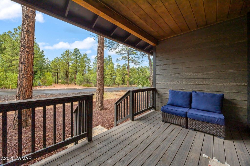Charming single-level townhome featuring 2 bedrooms, 2 bathrooms, and a convenient single-car garage. Enjoy both front and back patios, perfect for relaxing or entertaining. Ideally located just over a mile from Summit Hospital and many restaurants, stores and other amenities, this home combines comfort and convenience. Inside, you'll find thoughtful upgrades including a cozy gas fireplace, knotty alder cabinetry, and granite countertops in both the kitchen and bathrooms. Additional highlights include forced air gas heat and central A/C, a separate laundry room, and a walk-in pantry. The popular floor plan offers seamless access from the living room to the back deck, where you can enjoy peaceful views of the community common area. Home does convey furnished