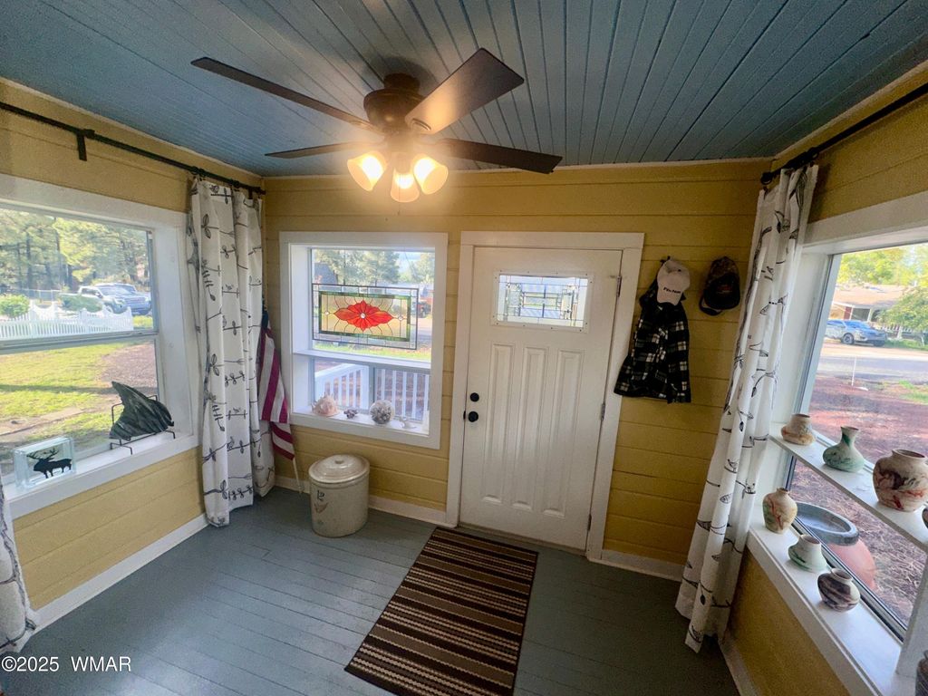 Charming 3-Bed, 2-Bath Vintage Home with Modern Touches Discover the warmth and character of this beautifully maintained three-bedroom, two-bath residence, where timeless craftsmanship is paired with today's conveniences. From the welcoming enclosed front porch to the decorative trim and eye-catching exterior details, this home radiates curb appeal. Step inside to find gleaming hardwood floors and abundant natural light streaming through large windows. The inviting living room centers around a pellet stove"”perfect for cozy evenings with family or friends. The kitchen combines classic style with practicality, featuring retro-inspired cabinetry and appliances that complement the home's vintage feel while still delivering everyday functionality. The spacious primary suite offers a private ensuite with period-style fixtures, and the two additional bedrooms provide plenty of character and comfort. Out back, a newly built covered deck creates the ideal spot for entertaining or morning coffee while enjoying the serene backyard with mature trees, landscaping, and a garden area. Located in Woodland Park, this property gives you a RV hook up and access to a private community fishing lake, as well as close proximity to Woodland Lake Park and the National Forest. This home is a true treasurea blend of historic charm and modern living. Don't miss the opportunity to make it yours.