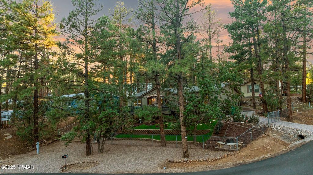 Rare Find in the White Mountains - Stunning Home Surrounded by Tall Ponderosa Pines This meticulously maintained 4-bedroom, 2-bathroom home is nestled among the whispering Ponderosa Pines of Show Low, Arizona, at a refreshing 6,300 ft elevation. Enjoy cool summers, colorful autumns, and picturesque winters in this peaceful mountain retreat. Step inside to an open and inviting great room with tongue-and-groove ceilings, newly installed knotty alder cabinetry, quartz countertops, a spacious kitchen island, and a farmhouse sink. The home is beautifully updated with new fixtures, ceiling fans, luxury vinyl flooring throughout, and tastefully furnished décor "” truly move-in ready. The bathrooms feature marble-topped vanities, a soaking tub, and a separate shower in the primary suite, complete with dual vanities and walk-in closets. Outdoor living is just as impressive, with lush year-round green grass, professional landscaping, a covered concrete patio, a Trex deck, paver driveway, greenhouse, sprinklers, and full fencing with a gated entrance. The property also includes an attached storage building. Recent upgrades add tremendous value: " Brand-new roof (2024) " New AC and heating system " New exterior doors and sliding doors " New electric range and above-range microwave Freshly painted inside and out with rain gutters Whether as a full-time residence, a short-term rental investment, or a mountain getaway, this property is a rare opportunity. With no HOA, full city services, and furnishings included, all you need to bring is your toothbrush. Come experience the views, the pines, and the tranquility homes this pristine don't come along often!