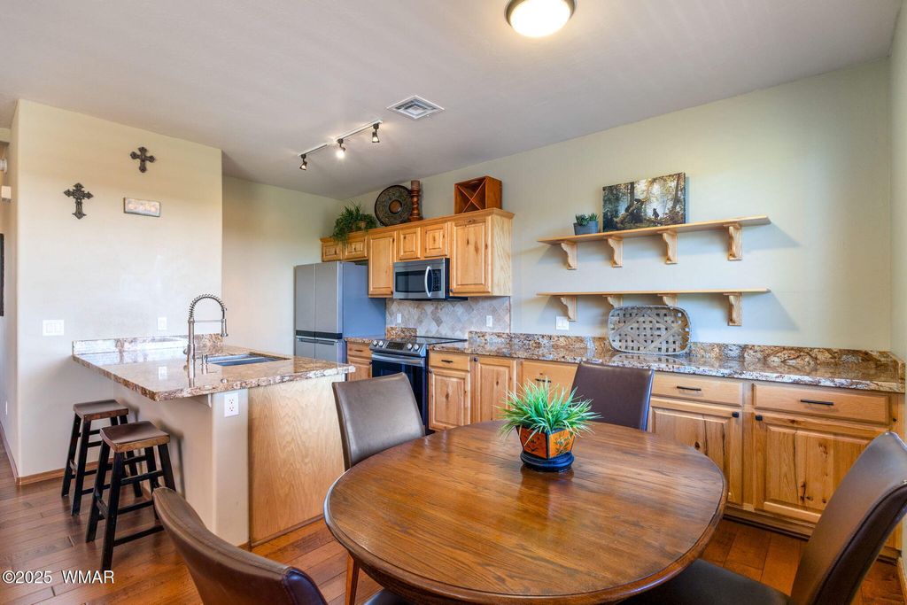 Bison Ridge Retreat - Move-In Ready! An incredible opportunity to own this partially furnished, first-floor condo in the desirable Bison Ridge Community, where pride of ownership shows after 17 years . Backing the Sitgreaves National Forest, this 2B/2B getaway offers both comfort and convenience. Inside, you'll find an inviting open-concept great room that flows into a gorgeous, spacious kitchen featuring ample counter space, granite throughout, and abundant storage, plank flooring. The dining and living areas extend to a covered deck, perfect for enjoying the cool mountain air year-round. The primary suite includes an en suite bath and access to its own private patio. Ideal as a full-time residence, weekend escape, or investment property"”this one is ready to enjoy!