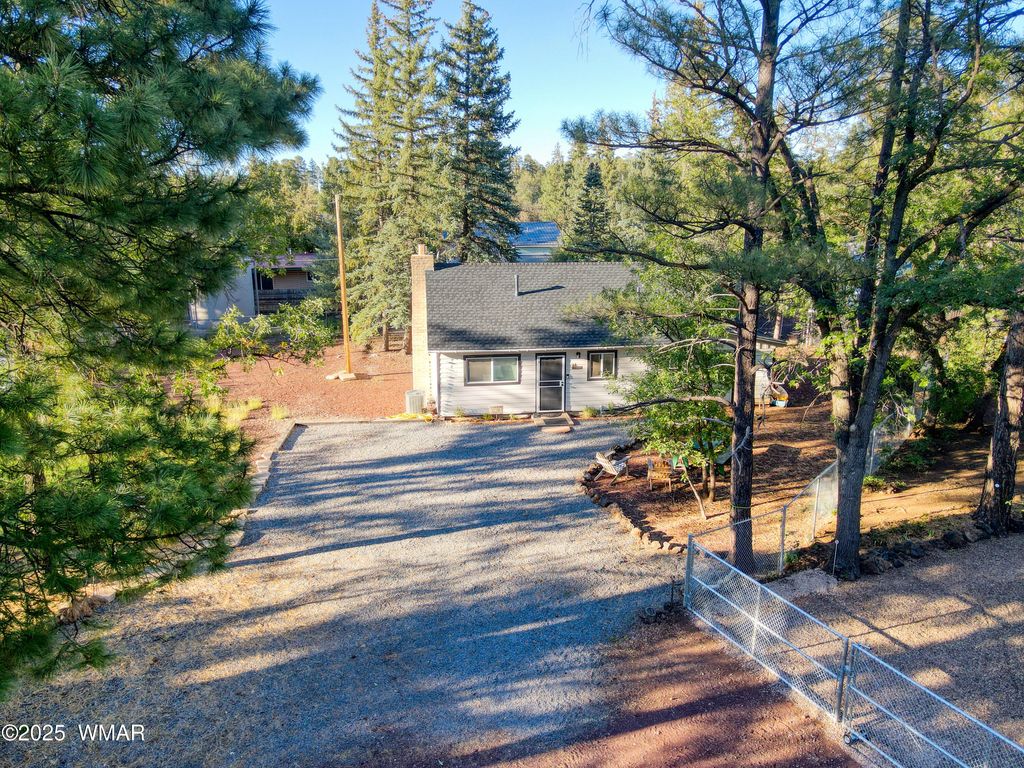 Tucked away at the end of a quiet cul-de-sac, this 3-bedroom, 1-bathroom cottage sits on a spacious 0.30-acre lot close to Walnut Creek. Surrounded by tall pines and mature apple trees, this peaceful retreat offers both privacy and convenience while being just minutes from all the shopping, dining, and recreation that Pinetop-Lakeside has to offer. Inside, you'll find a thoughtfully upgraded interior (2021) blending rustic mountain character with modern comfort. The kitchen boasts custom green cabinetry, butcher block countertops, stainless steel appliances, and open shelving that add warmth and charm. The living area features wood accents, a cozy fireplace, and large windows that bring in natural light and forest views. Step outside to enjoy the true mountain lifestyle: A greenhouse, garden space, and multiple sitting areas under the treesperfect for outdoor gatherings. With plenty of room to expand, this property gives you flexibility whether you're looking for a full-time home, weekend getaway, or investment opportunity. Additional highlights include: New roof (2024) Air conditioning for year-round comfort. Peaceful creek sound setting (depending on the time of year). Furnishings available for purchase outside of escrow. This inviting cottage captures the essence of mountain living while providing modern updates, outdoor potential, and a location that balances tranquility with easy access to town amenities.