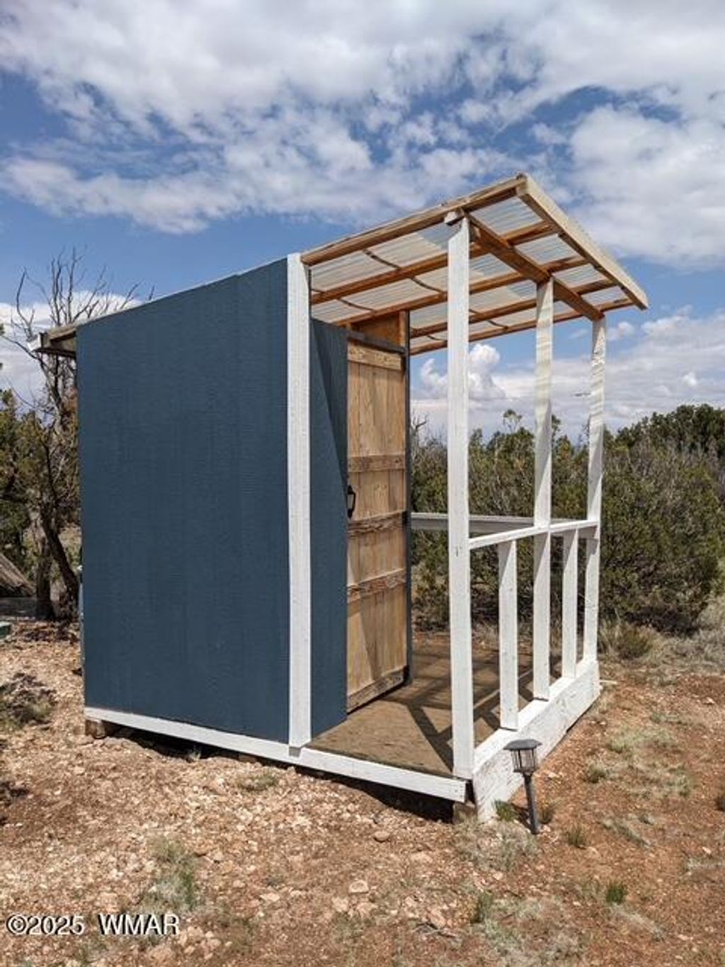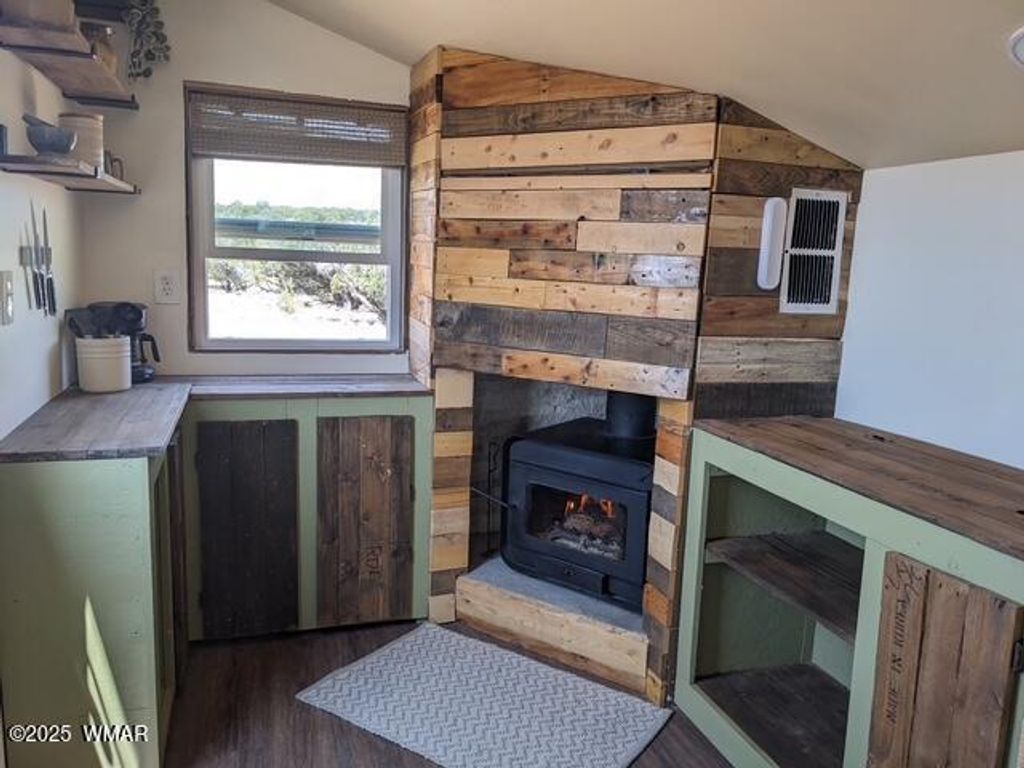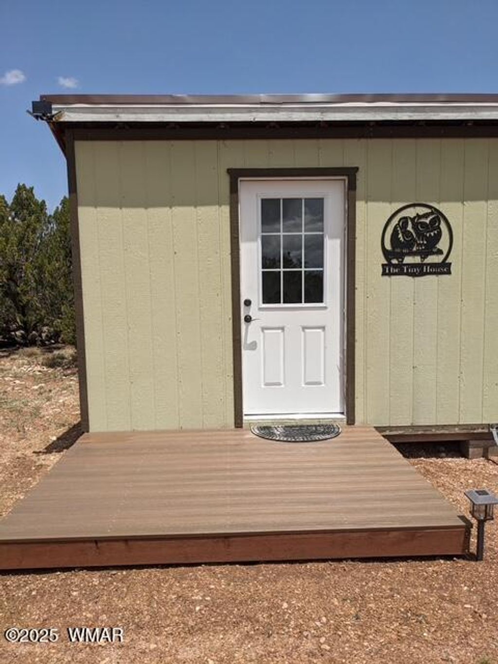 Looking to live off the grid? Here is your chance to own a beautiful small home on 20 private acres in Chevelon Retreat. This is the perfect set up for a week-end getaway or full time living! This adorable home was built in 2022 and is 200 square feet, however it feels much bigger! Brand new deck added in 2025. There is a comfy sitting area for relaxing, a spacious sleeping area with ample storage, warm wood burning fireplace, spacious kitchen area. The property also has a separate area for running water(rain water), out building and also comes with a generator. Bring your horses, side by sides or just go explore the 20 acres. Chevelon Retreat also offers a community well for your convenience to haul water to your home, optional POA $300.00. This property is luxury off the grid living