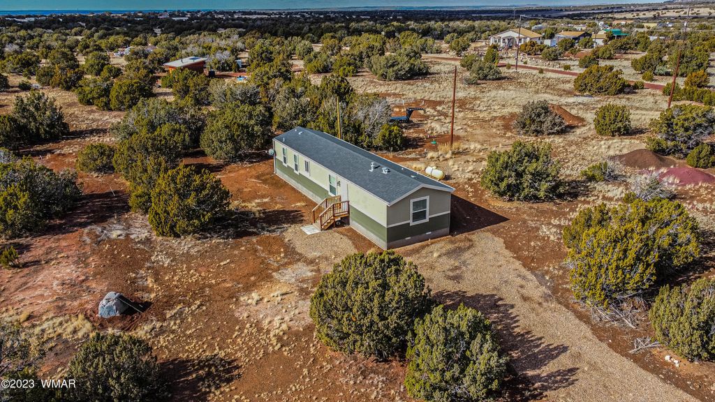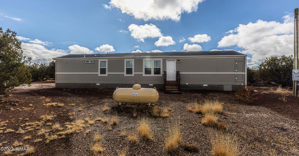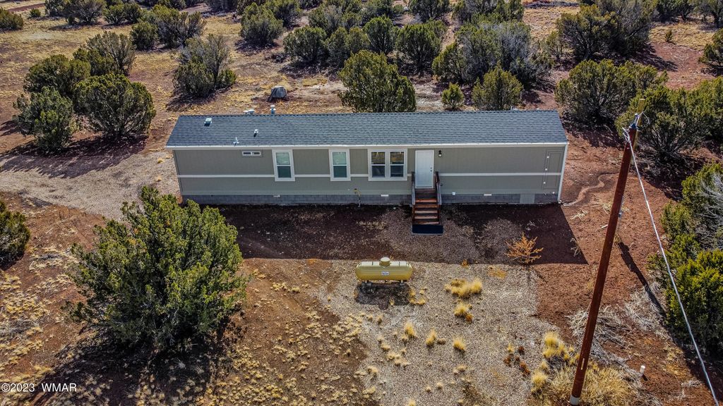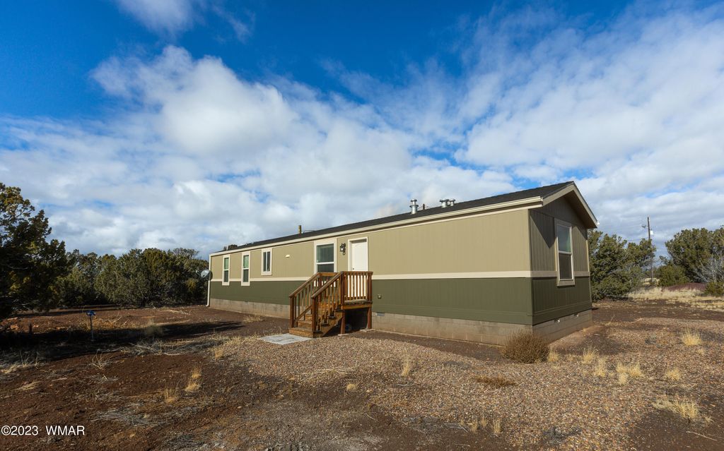 2308 Sitgreaves Street, Show Low, AZ 85901 Welcome to your dream home in Show Low! This stunning 2-bedroom, 2-bath retreat sits on a generous 3.43-acre lot, offering a serene landscape and quiet surroundings. Built in 2021, this 1,040 sq ft home showcases modern luxury and thoughtful design. The property has a state-of-the-art well, drilled 600 feet deep into the Coconino aquifer, ensuring a reliable water source. The house is powered by APS electric, supplemented by a propane tank exclusively for the furnace and stove. Step into the heart of the home"”a spacious living area with vaulted ceilings and upscale finishes. A chef's delight, the kitchen boasts a gas range, built-in disposal, dishwasher, and sleek stainless steel appliances. The home is fully furnished and move-in ready for your convenience. Notable features include: - Sturdy construction: The home is built on a 6-inch deep cement slab with 18-inch edges, reinforced with rebar and a stem wall. - RV hookups: Enjoy the convenience of electric, water, and a dump station, perfect for multiple recreational vehicles. - Expandable power: Wired for 200 V, the home uses only 100 V, allowing for the addition of a garage if desired. - Three water spots: Ensuring accessibility across the expansive property. - Secluded oasis: Experience privacy while still being close to amenities, making it an ideal off-grid living opportunity. - Snow-ready roof: The roof is designed to handle additional snow loads, providing peace of mind in winter. Additionally, the property features a septic system, making it a self-sufficient haven. The property's boundaries are clearly marked, offering peace of mind and clarity. Inside, the home blends comfort and elegance with a formal dining room and an open-concept layout that enhances the spacious feel. Perfect for those seeking a private yet accessible retreat with off-grid potential, this unique property offers both serenity and versatility. Don't miss the opportunity to make it yours.