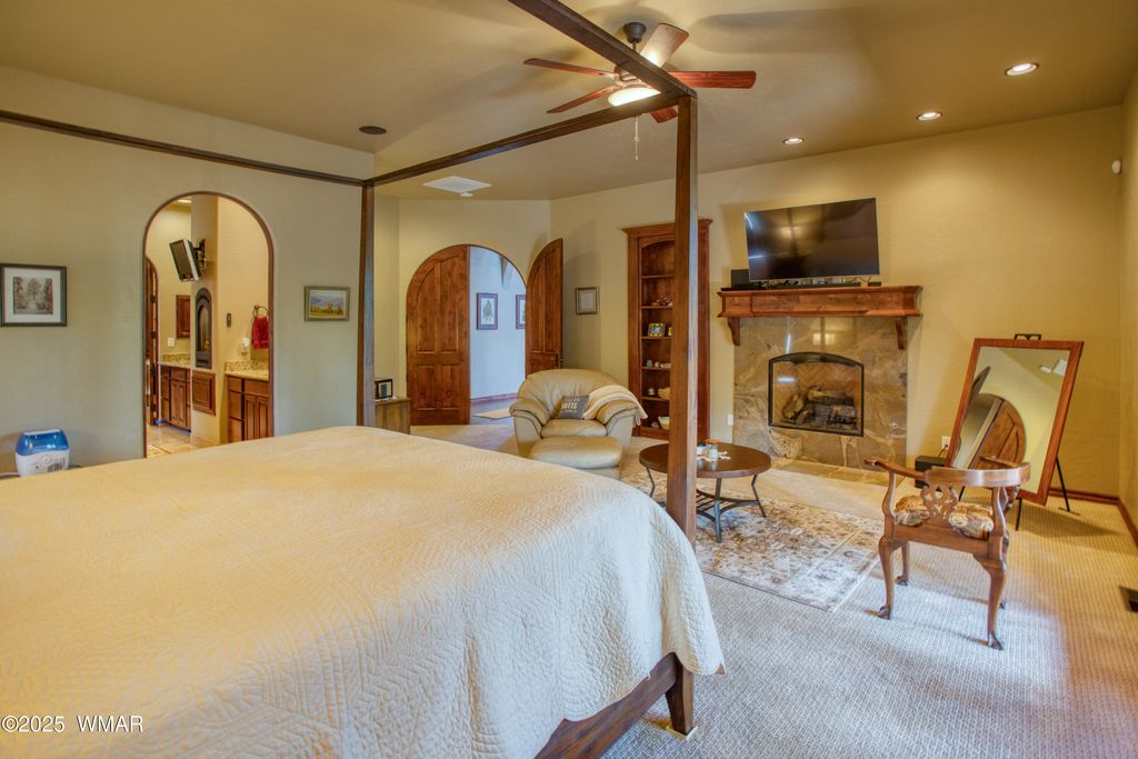 Do you plan to own the home of your dreams? Well here it is. Nestled in the pines with privacy to the sides and back of property. With approximately 1600 sq ft of redwood deck this home takes outdoor living to a new level. The home features three natural gas fireplaces each has a remote. The huge master bedroom boasts a sauna for those tired bodies. Each bath has an instant on tankless hot water tank. The driveway features pavers from street to front stairs. The oversized garage (1100 sq ft) has an outlet for electric charge vehicles. Water is softened throughout home. Reverse osmosis is in kitchen and is active in refrigerator. Kitchen island has sink with garbage disposal as well as a disposal in the counter. The doors, cabinets all have beautiful, finished wood all are of the same material. Arches in home lead you to hallway and bedrooms. the office area had built in cabinets. Living in the community of Torreon is a great lifestyle. Swimming pool, two exercise rooms, spa, grill. The family center is a great place to play pickleball, tennis or just have fun at the catch and release pond. Engineered hardwood floors are impressive as you enter the home. The room adjacent to the master is a bonus room perfect for crafts, sewing, or any hobby. THIS HOME IS TIMELESS!!! PICTURE YOURSELF SOAKING IN MASTER BATHTUB WITH FIREPLACE AND TV...!!!