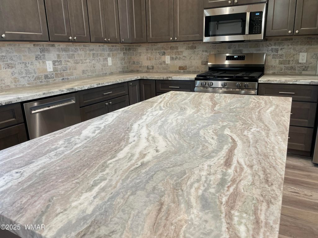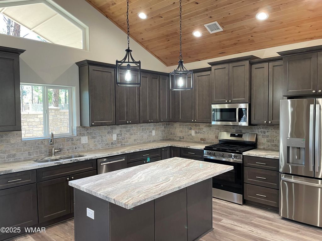Beautiful newly constructed home in the center of town in and adjacent to a brand new subdivision! Tall pines, fenced yard, front yard landscaping, round-about drive, open skies, and close to everything. Home features covered front and back porches, spray foam insulation, vaulted great room, knotty alder ceilings, side-entrance garage, heavy-duty 50 year asphalt shingles, granite countertops, and tankless water heater. Kitchen has sold-wood cabinetry with soft-close doors and drawers, kitchen island, stone backsplash, and new stainless steel kitchen appliances. Listing agent is a principal of the seller LLC.