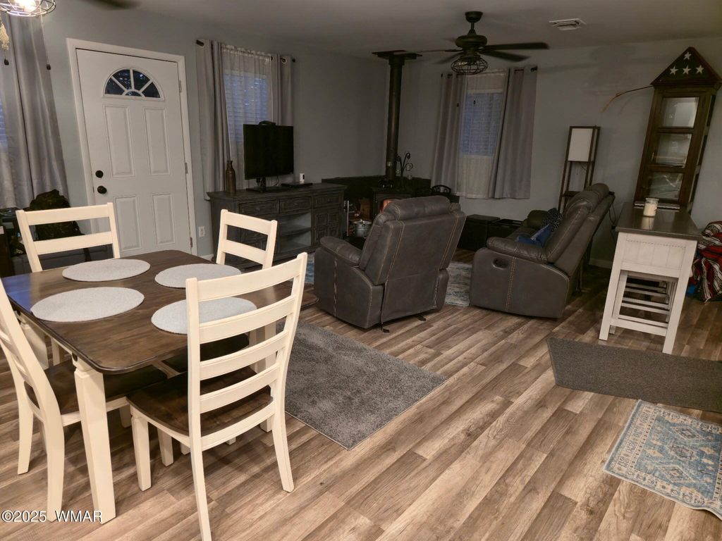 The Cutest and Most Charming Home in Show Low, AZ! Step inside this darling-remodeled gem featuring beautiful new flooring and freshly painted kitchen cabinets. Open great room and kitchen. Enjoy your wood stove watching the flames while sipping that hot cocoa. The backyard opens to serene tall pines, offering the perfect setting for morning coffee or evening gatherings. Completely fenced for privacy and pets, this home sits in a prime location close to the college, shopping, and dining "” all with no HOA! Whether you're looking for your first home, a cozy retirement retreat, or a fantastic short-term rental opportunity, this property checks every box for comfort, charm, and convenience.