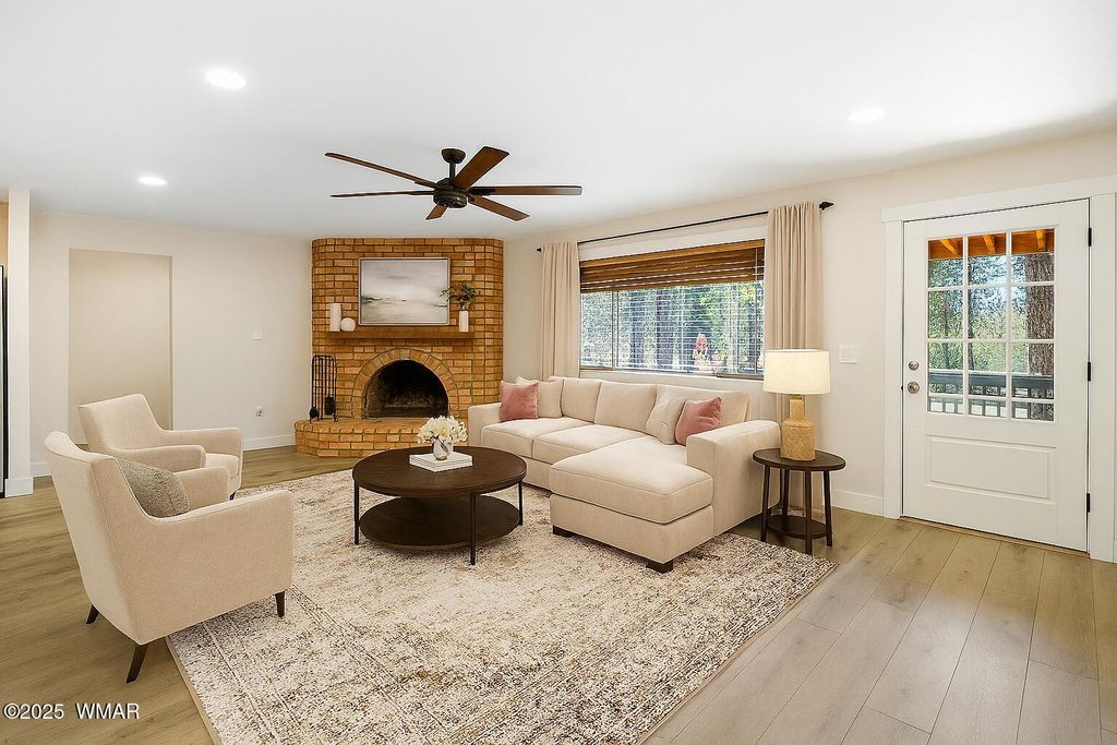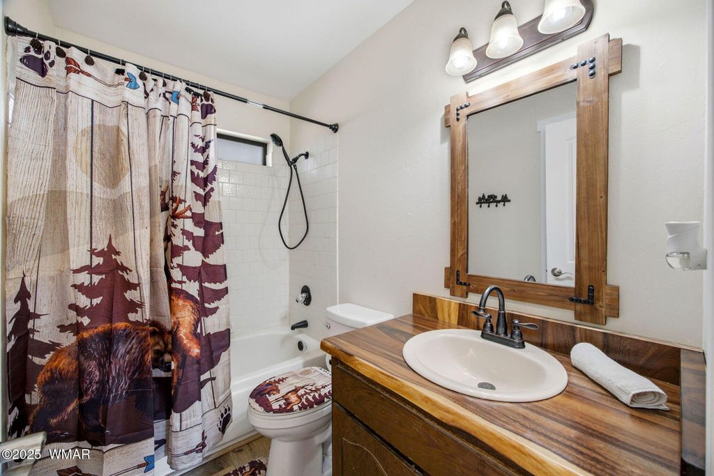 Charming Newly Renovated Log sided Home Nestled Among Ponderosa Pines! This beautifully updated retreat offers the perfect blend of rustic charm and modern comfort. The oversized 2-car garage provides ample space for vehicles, storage, and hobbies.A welcoming stone walkway leads to a cozy living room with a brick fireplace-ideal for relaxing mountain evenings.The spacious kitchen flows seamlessly into a warm dining area, perfect for gatherings.Newly added primary suite with a luxurious walk-in tile shower, double vanity, and expansive walk-in closet. Step outside to enjoy the shaded backyard oasis with fruit trees, storage shed, and RV gate with parking. Whether you're seeking a full-time residence or a weekend escape, this home offers privacy and comfort. Call today to schedule a viewing Close to Rainbow Lake, a serene and picturesque lake created in 1903 by Mormon settlers who dammed Walnut Creek, giving rise to the town of Lakeside. With an elevation of about 6,760 feet, Rainbow Lake offers cool, refreshing weather during the spring, summer, and early fall. The lake spans approximately 116 acres with an average depth of 7 feet and a maximum depth of 14 feet. It's a popular spot for fishing, with species like Rainbow Trout, Largemouth Bass, Channel Catfish, Bluegill, and Green Sunfish. The lake is best fished from a boat, and there are several amenities available, including a public boat ramp, fishing pier, and nearby campground.