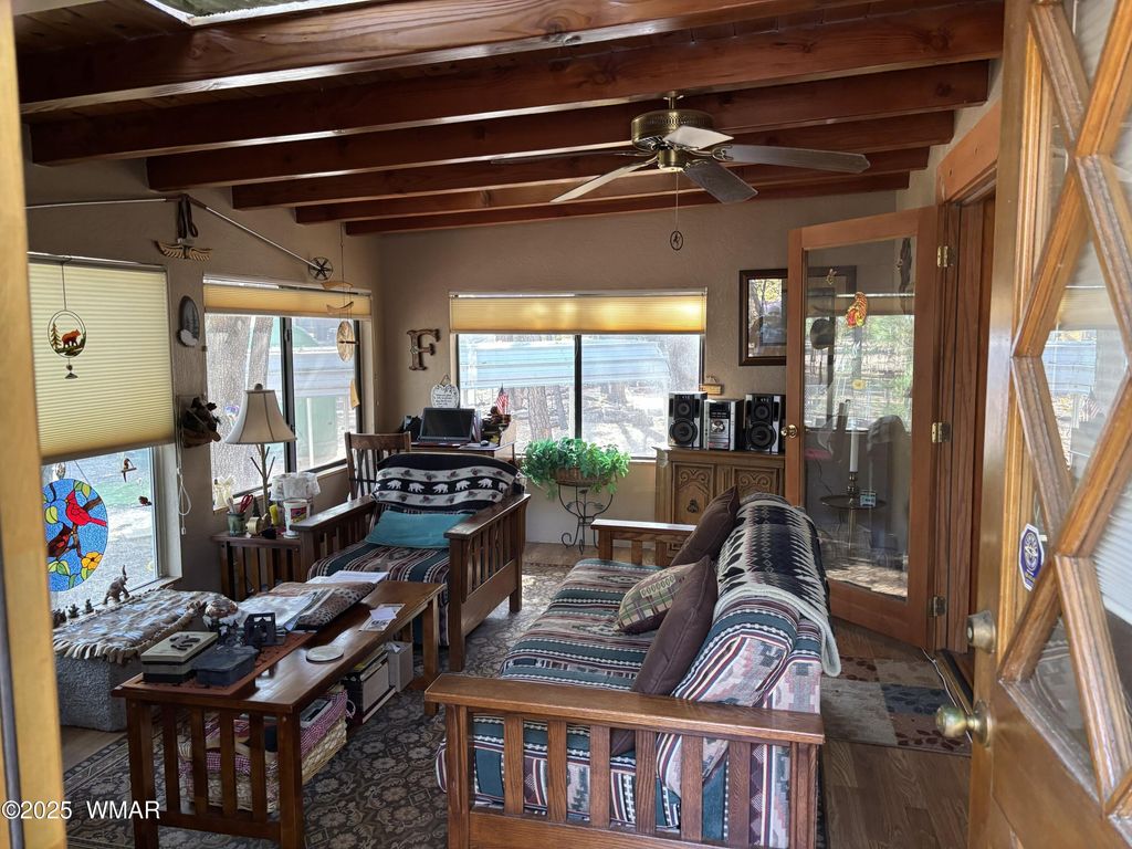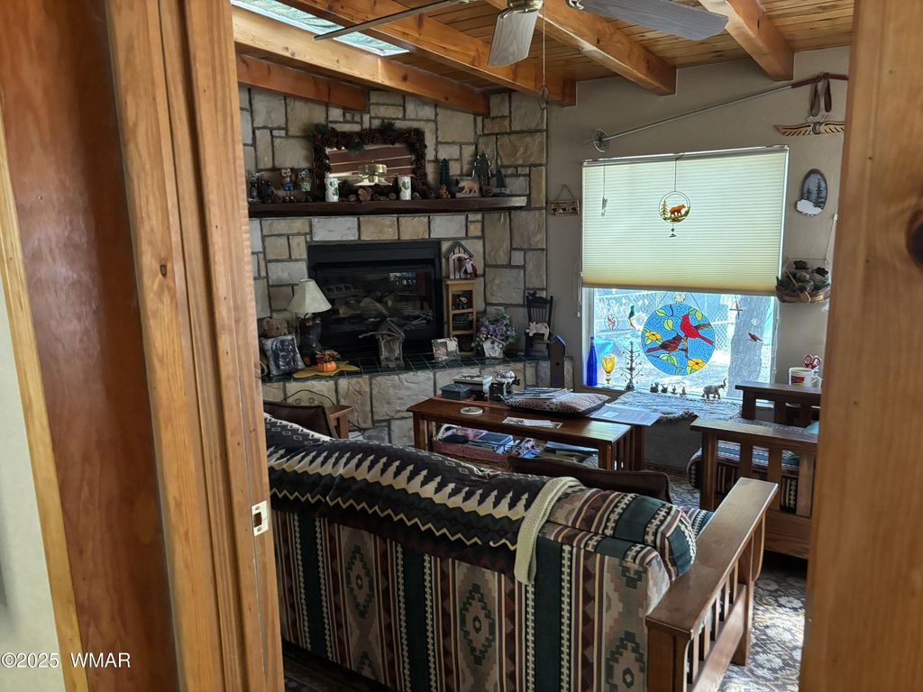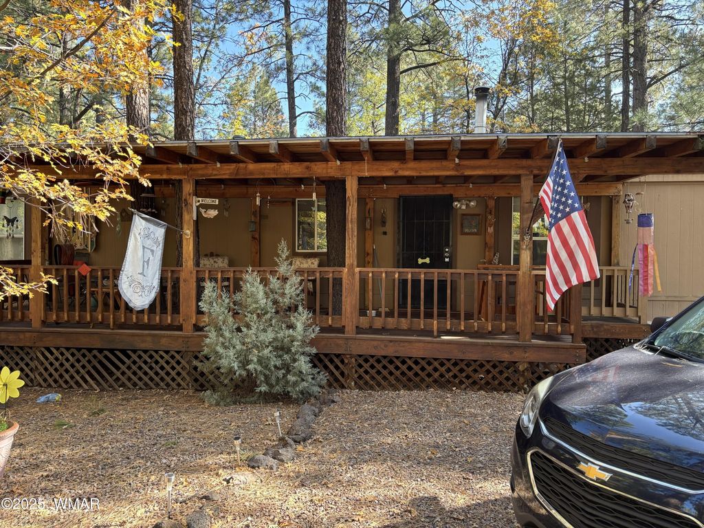 Welcoming country 2 bdrm,/2bath home located in the pines on a double corner lot. A large covered front deck welcomes you into the home which has a spacious living room with gas fireplace and a den with a woodstove for those chilly nights. A lovely private deck off the den looks out over the backyard and garden area. All furnishings in the home convey. Property also contains 3 utility sheds, RV Parking, and a covered carport with slab parking area. Located in a quiet, well-maintained neighborhood, this home is your gateway to everything the White Mountains offers!