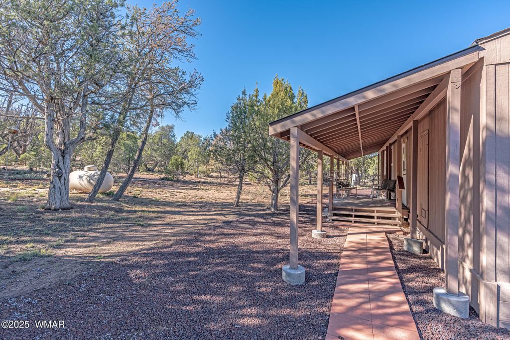 Escape to your own heavily treed mountain retreat just 12 miles outside of Show Low! This charming 2-bedroom, 1-bath manufactured home sits on a secluded and fully fenced 5-acre property that has it's own private water well, and gated entry for added privacy. The home is being sold furnished and iset up perfectly for full-time living or as a peaceful second home getaway. Plenty of space to explore and unwind while soaking in all the natural beauty the mountain has to offer. For those who love stargazing, this property also includes an Explora-Dome personal observatory"”ideal for the clear, dark-sky nights under the White Mountains sky.