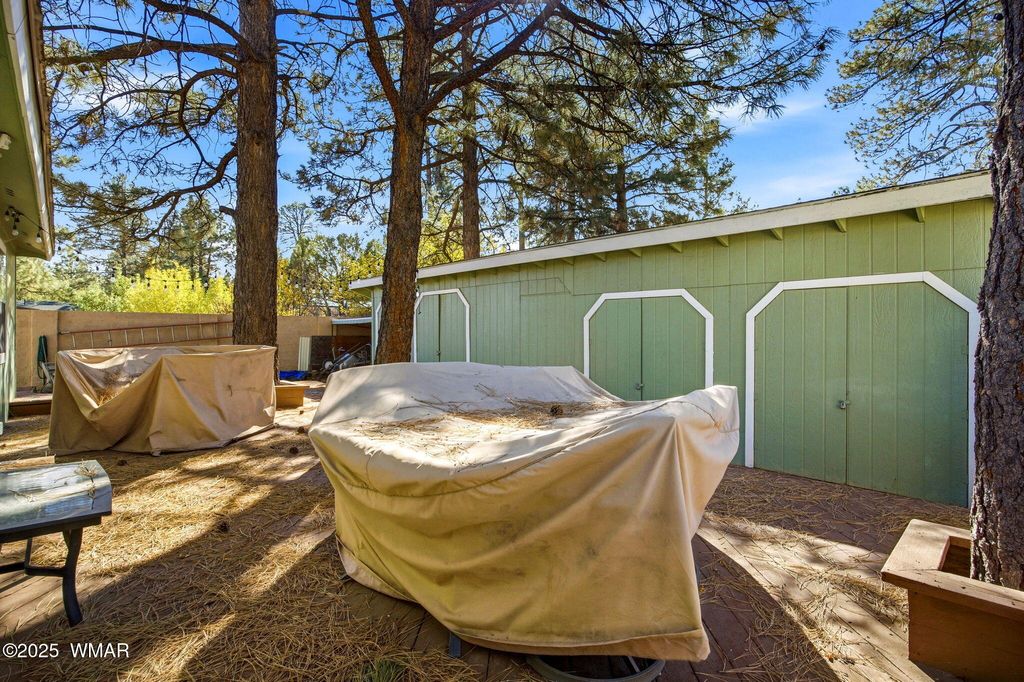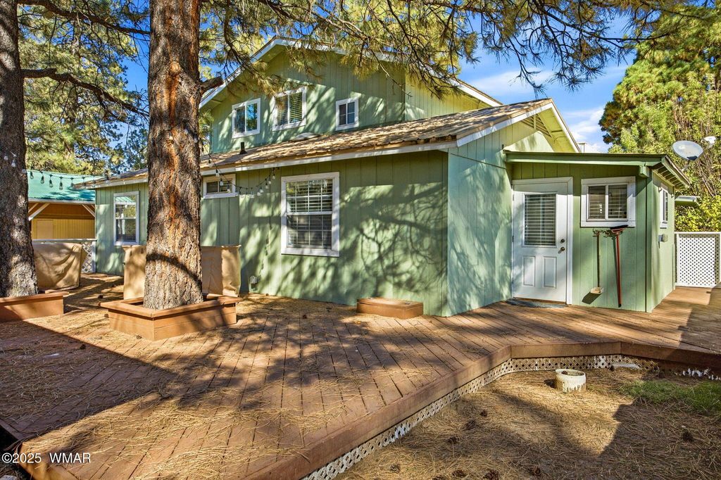 Escape to the cool mountain air in this beautifully maintained 4-bedroom, 2.5-bath cabin nestled among the tall pines of Overgaard. This spacious two-story home offers the perfect blend of rustic charm and modern comfort, making it an ideal full-time residence, vacation getaway, or short-term rental. Step inside to find a welcoming living area featuring a cozy wood stove and plenty of natural light. The well-designed layout includes a convenient mud room, a fully furnished interior, and a kitchen ready for all your culinary adventures. Upstairs, the huge master suite is a true retreat with its private balcony overlooking the serene forest views. Enjoy the fresh mountain breeze from the front patio or entertain guests on the backyard deck. A large storage shed provides ample room for tools, gear, or hobbies, while the metal roof ensures lasting durability. Also, no HOA! An added bonus this property includes the adjoining lot, giving you extra space for all your toys, RV, or potential future expansion. Don't miss this opportunity to own your slice of mountain paradise in Overgaard move-in ready and fully furnished!