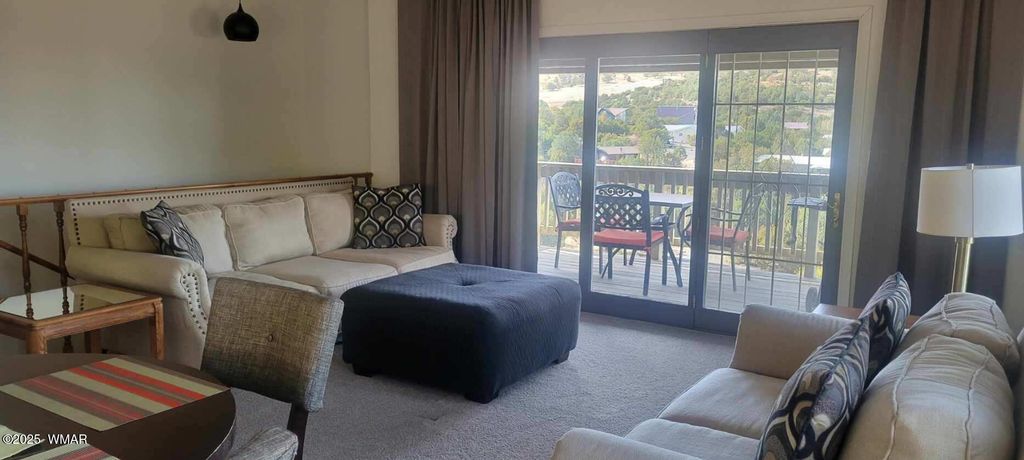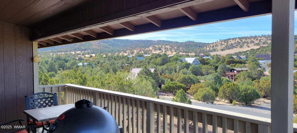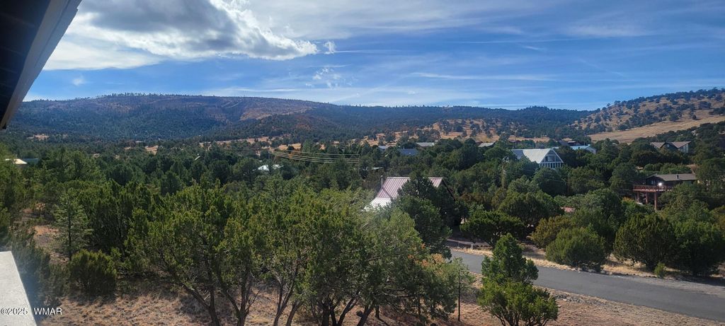 Fully furnished/turnkey home nestled on a gentle slope overlooking the breathtaking Round Valley mountain range. This charming, remodeled cabin is a perfect retreat for those seeking tranquility and natural beauty. Brand new windows throughout the home (excludes sliding door), exterior paint, Firewise landscape clearing has been completed in 2025 as well as a new 10 x 14 Graceland shed has been added. The compact, yet cleverly designed space, maximizes comfort and style while blending rustic charm with modern amenities. A covered deck offers the perfect spot to drink your morning coffee and watch the deer and elk right outside your door as well as the beautiful mountain range. This home is in a nice quiet private neighborhood and yet only a few minutes to shopping. Minutes to Sunrise Ski Resort, fishing, hiking as well as elk and deer hunting. No HOA so RV parking and animals are allowed. Just bring your clothes and enjoy Christmas in the beautiful White Mountains of Arizona. Listing agent is related to seller.