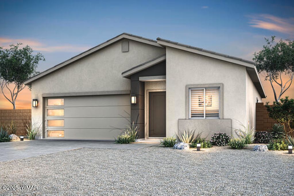This 1,329 sq ft home offers a traditional family floor plan with smart design throughout. The primary bedroom suite features a walk-in closet and private bathroom, while two additional bedrooms share a second full bath. The open-concept great room connects to a generous dining room, creating over 350 sq ft of combined living and entertaining space. The kitchen includes a walk-in pantry for ample storage, and a separate utility room keeps laundry tucked away. Outdoor living includes a covered front porch and a covered back patio for year-round enjoyment. The attached 2-car garage provides parking and storage, with interior access through the foyer. Located in Show Low Bluff, offering convenient access to schools, shopping, and recreation. This is a home to be built. Buyer will purchase lot and contract with builder for the build. Any changes to this floor plan, may require additional charges.