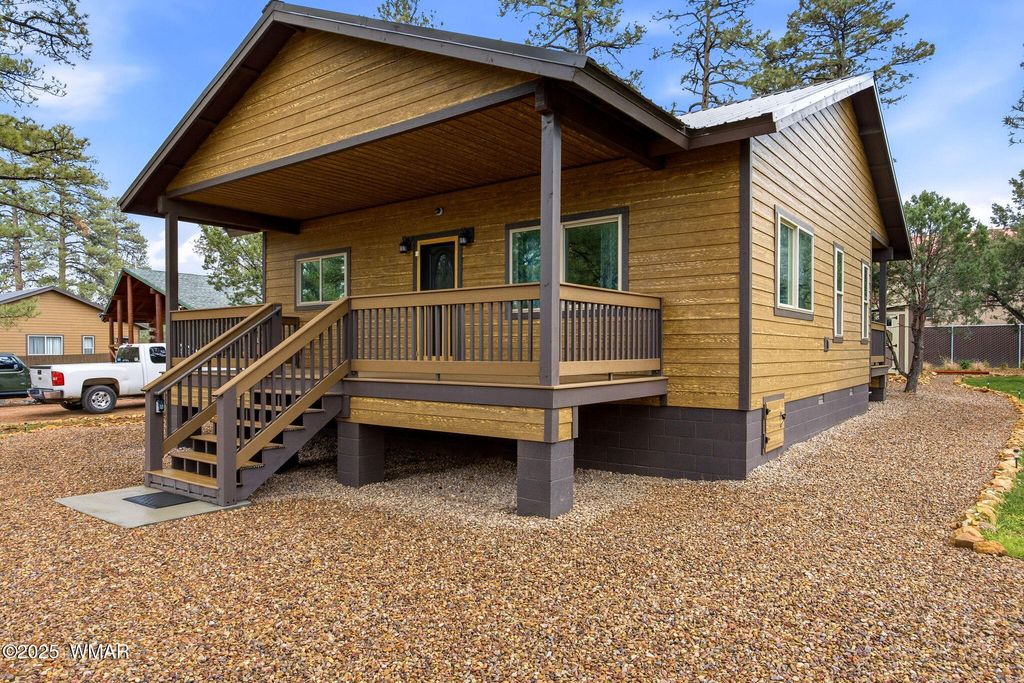 Almost new and waiting for you, this gem in the pines offers the perfect blend of comfort and charm. The exterior features a spacious lot with mature Ponderosa pines, a newly installed shed, and a partially fenced backyard. Enjoy low-maintenance living with durable siding, Trex decking, metal roof and a freshly laid gravel driveway. Step inside to be greeted by vaulted ceilings, vinyl plank flooring, granite countertops, and ample kitchen cabinetry. The primary bedroom includes a convenient half bath, while the beautifully updated guest bathroom features a walk-in shower. Don't miss the opportunity to view this inviting home"”schedule your showing today. Thank you.