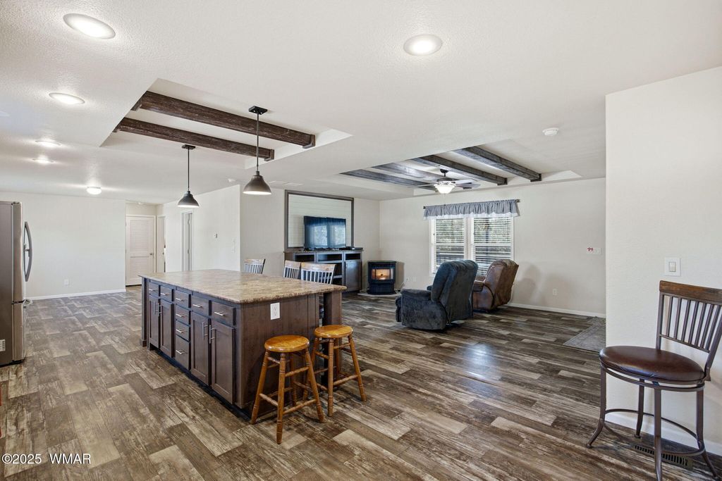Escape to your own woodland retreat on 3.77 acres of soaring, fragrant pines"”where comfort, charm, and opportunity come together. This inviting 3-bedroom, 2-bath, 1,726 sq ft home offers an expansive open-concept living, dining, kitchen, and family room space accented by exposed wood beams, warm vinyl laminate flooring, a pellet stove for cozy evenings, and a reliable gas furnace for year-round comfort. The kitchen delivers abundant counter space, extensive cabinetry, modern appliances, and a gas stove perfect for the home chef. The split floor plan provides privacy, with oversized bedrooms and a dreamy primary suite featuring a dual vanity and a generous walk-in closet. Step outside to an expansive covered front deck ideal for morning coffee or sunset viewing. Bonus features include etc. a 10x20 powered outbuilding, 12x21 carport, multiple RV hookups, dog house with run, and a circular drive. Easily accessible on a county-maintained paved road. Zoned commercial/residentialunlock endless possibilities. Recent survey complete. Seller willing to split lotsee MLS #258746.