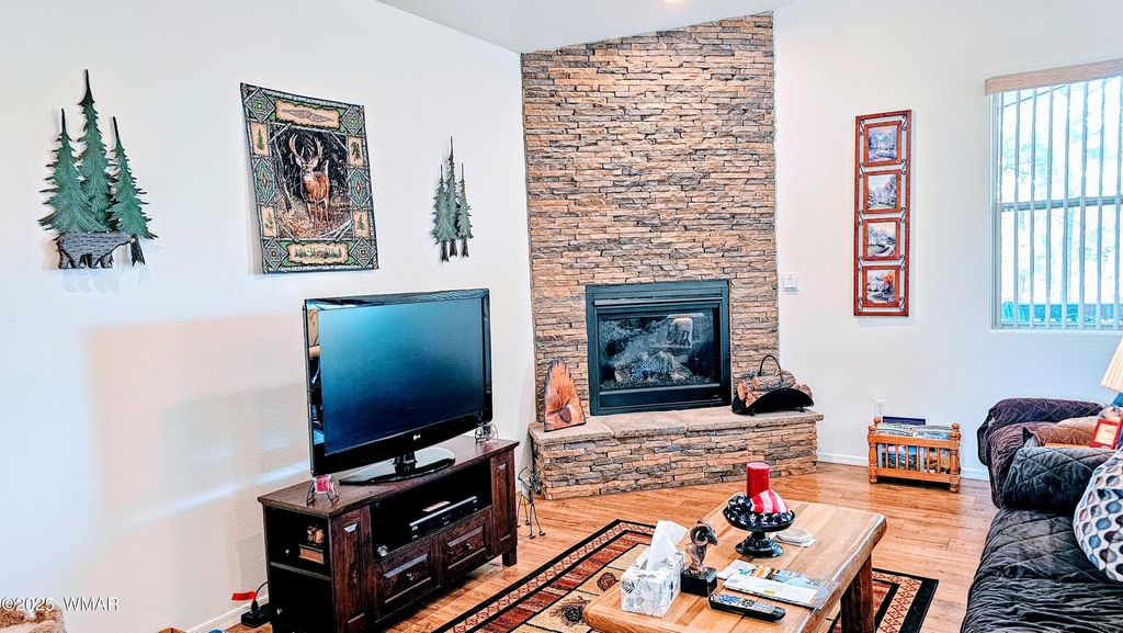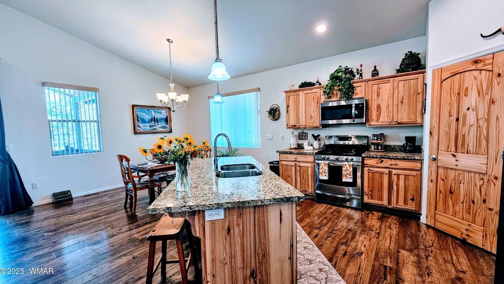 Welcome to your private mountain retreat, a 3-bedroom, 2-bathroom home built in 2018. Tucked away on a landscaped .58-acre lot, the property offers quiet seclusion with no direct back neighbors, courtesy of a large cement privacy fence and tall pine trees. Step outside to your tranquil outdoor space, which features a private covered back porch with durable composite decking. Inside, vaulted ceilings and a floor-to-ceiling natural stacked stone feature add rustic charm. The kitchen is a chef's dream, with a functional island, granite countertops, and natural hickory cabinets. High-quality Pergo Max amber chestnut flooring flows throughout the home, and an oversized 2-car garage provides ample storage. Two parcels - 309-03-014/015 There is a listing with just the 1 home lot MLS#257940 This home is a perfect blend of modern comfort and mountain living in the heart of Show Low, Arizona. Show Low, the business and recreational hub of the White Mountains, offers a vibrant lifestyle with a small-town feel. Enjoy the four distinct seasons, from the warmth of summer to the snowy winters. Outdoor enthusiasts will thrive with access to over 120 miles of hiking and mountain biking trails, world-class fishing and boating at Fool Hollow Lake Recreation Area, and skiing at nearby Sunrise Park Resort. The community hosts various events, including a farmers' market, festivals like Show Low Days, and the Christmas Light Parade. With charming local shops, independent restaurants, and ample community facilities, this home offers the best of both peaceful mountain seclusion and convenient town amenities.