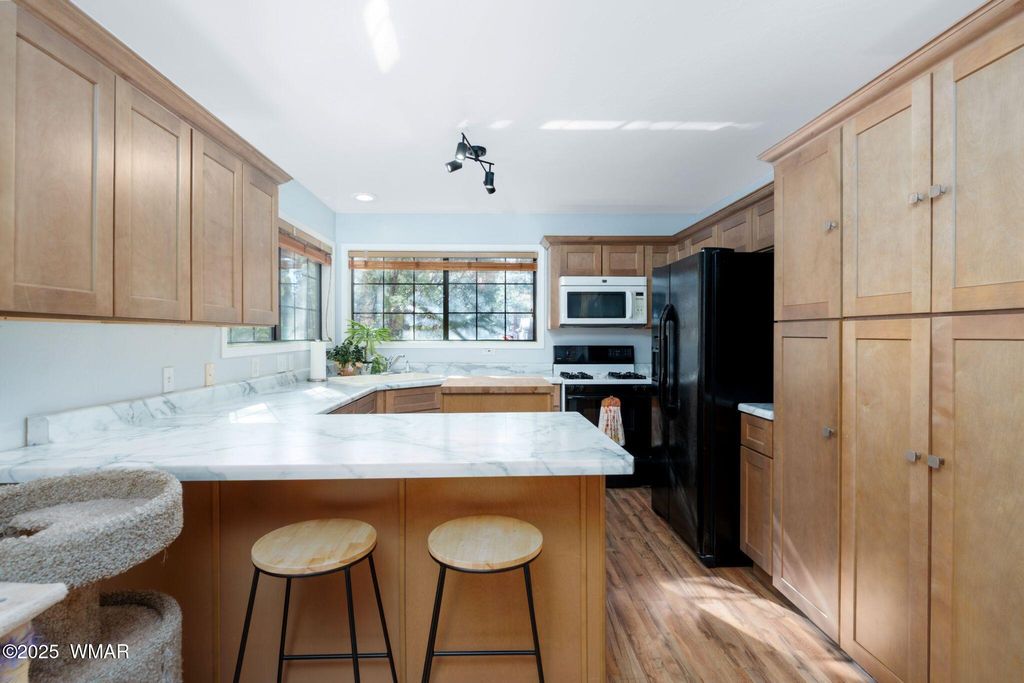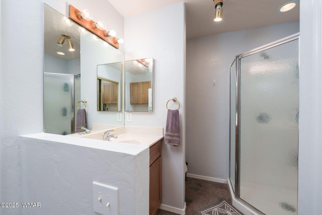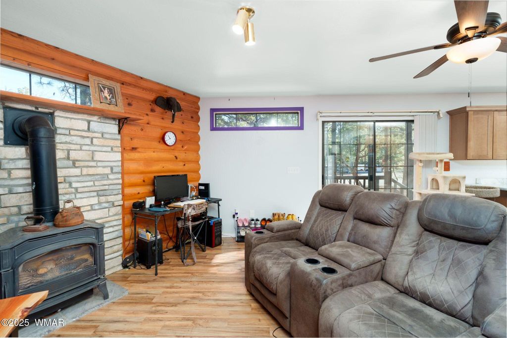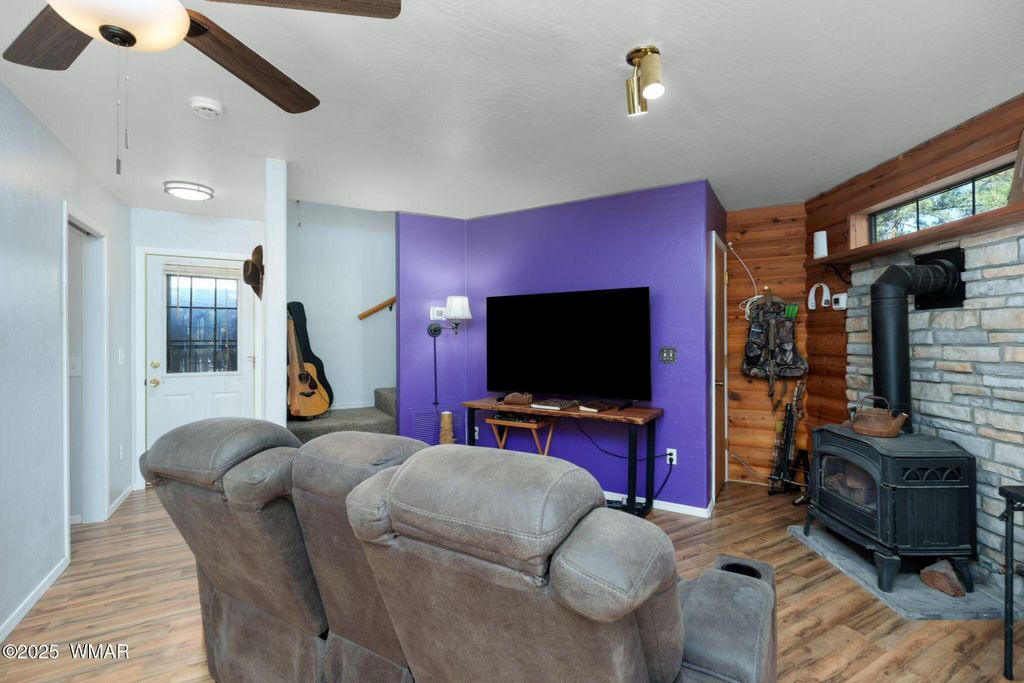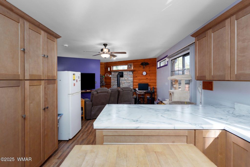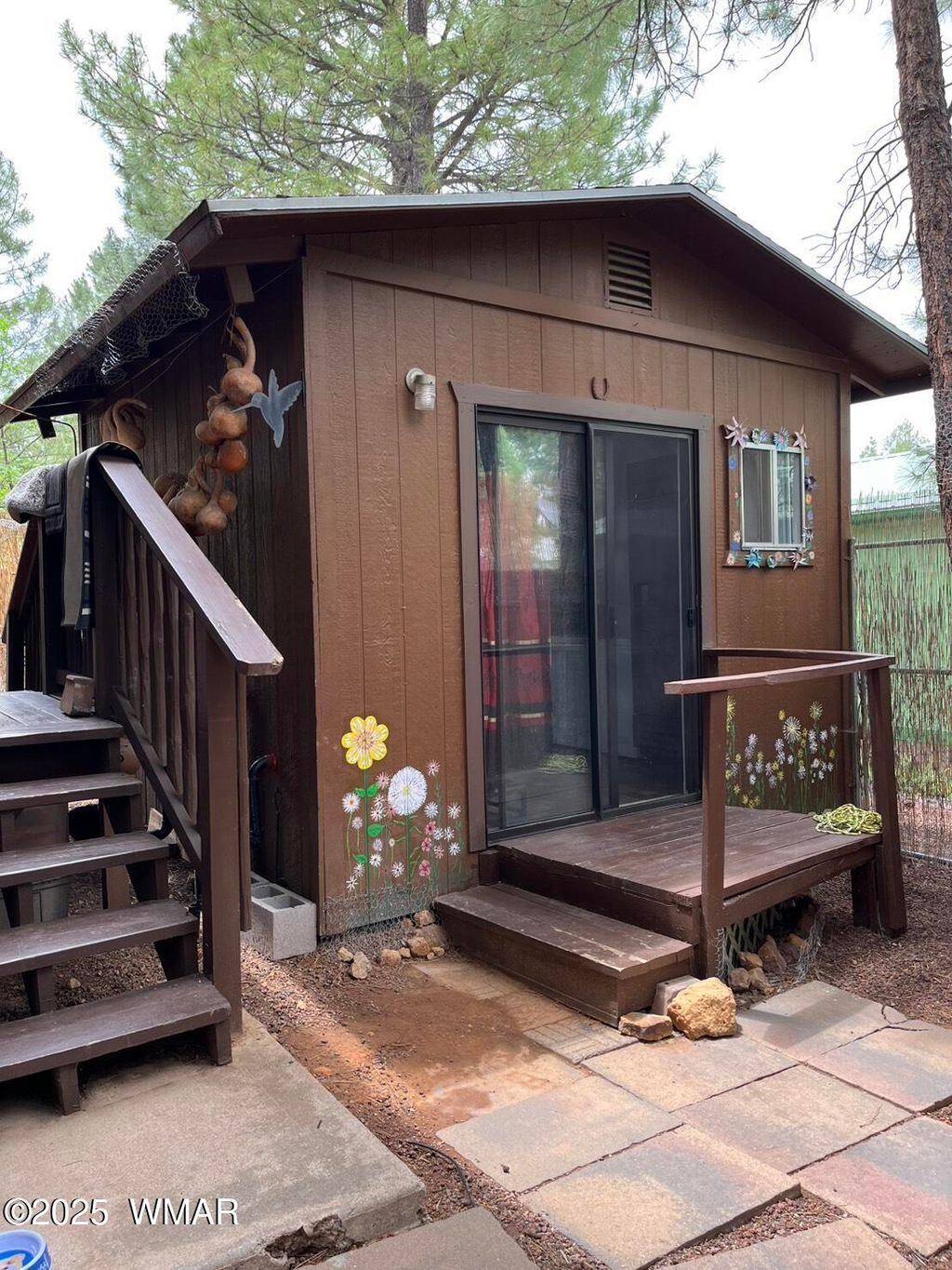 A cozy cabin nestled among the tall pines, offering the peace and serenity of the White Mountains while being just minutes from grocery stores, local restaurants, and the city park. Conveniently located on a corner lot, this property is perfect for full time living, second home or short term rental. The layout includes a second bedroom situated in the backyard near the back entrance of the house, providing privacy and flexibility for guests. The carport has been enclosed and can easily be converted back to an open carport or left as storage. The upstairs bathroom was renovated in 2023, and the downstairs kitchen was updated with new cabinets and countertops, combining modern functionality with rustic charm.