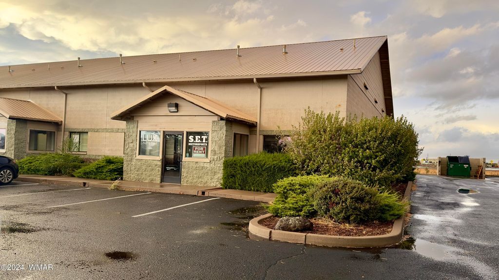 One 1,450 sq. ft. (18x80) Office/Warehouse spaces available for Lease. Features reception area, office, breakroom, restroom and a common foyer entrance. The warehouse loads from rear of building via 12'x12' overhead door. Bay measures approx. 18'Wx18'Dx16'H. Tenant to pay tenant utilities. Quality masonry building with air conditioning, heating, paved parking and attractive landscaping. Located in Show Low Airport Commerce Center. First Month Rent plus security deposit due at signing. Showings by appointment.