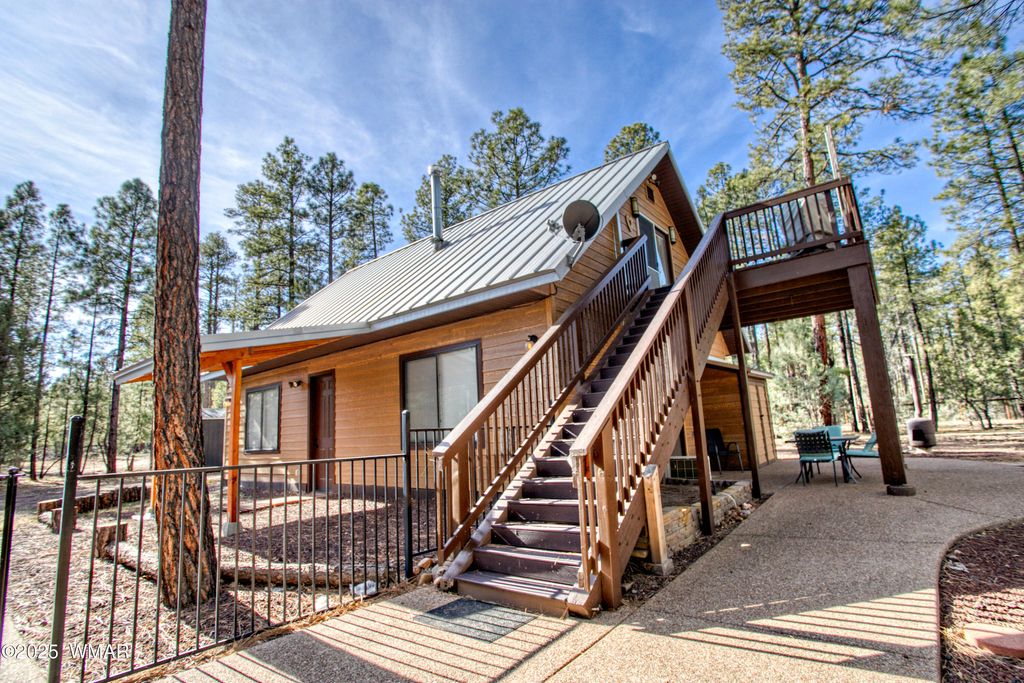 Beautifully remodeled three-bedroom home in the White Mountains of Arizona, currently operating as successful short-term rental/rentals. The layout can easily be converted into a true three-bedroom home by adding an interior spiral staircase which is included in the sale of this home(Installation not included) or the upstairs can continue to function as a private guest suite with a full kitchen.A recent, complete remodel"”including an addition of approximately 1,100± square feet"”brings the total living space to approximately 1,600 square feet. The home sits on one flat, pine-tree-covered acre, offering privacy, space, and a serene mountain setting.Inside, the home features newer appliances, upgraded flooring, and large windows that provide abundant natural light. SEE The open and split floor plan is both functional and inviting, designed to meet the expectations of today's discerning buyers. One large bedroom is located on the main level and two additional bedrooms with apt style kitchen suite on the second floor.Additional features include a two-car carport, RV parking with hook-ups, a workshop, outdoor barbecue area, and ample privacy. Located in a quiet neighborhood, the property is close to shopping, dining, and the hospital, while still surrounded by pristine ponderosa pines. Rainbow Lake is nearby, offering fishing and boating opportunities. Horses are allowed, no HOA, and the versatile layout makes this property ideal as a full-time residence, mountain retreat, or income-producing investment. One of the owners is a licensed real estate agent in the state of Arizona. Imagine waking up to stunning mountain vistas, crisp, clean air, and the promise of a day filled with excitement. Here in the White Mountains, that dream can become your reality. Whether you're an outdoor enthusiast, a culture seeker, or simply looking for a peaceful escape, the White Mountain area has something for everyone. Here's a glimpse of the adventures that await- Outdoor Recreation: -Tee off on pristine golf courses. -Cast your line in over many miles of rivers and streams, and an abundant amount of stunning lakes teeming with fish. -Embark on thrilling hunting expeditions. -Explore rugged terrain on exhilarating four-wheeling adventures. -Hike scenic trails with breathtaking views. -Enjoy boating and water sports on sparkling lakes. -In winter, carve down powdery slopes while skiing or snowboarding. -Experience the thrill of sledding in winter wonderlands. Wildlife & Nature- -Observe abundant wildlife with Elk, Deer and diverse bird species and other wildlife in their natural habitat. Entertainment & Culture- -Exciting gaming venues at the local casino. -Perfect your aim at target shooting ranges. -Immerse yourself in vibrant seasonal festivals. -Admire classic automobiles at captivating car shows. -Indulge in fine dining experiences. -Enjoy live musical entertainment. -Experience an exciting day and night life. The White Mountain area is renowned for its unparalleled beauty. With the many pristine lakes, rivers and streams, you'll be surrounded by stunning natural landscapes. Imagine waking up to panoramic views, breathing in the fresh mountain air, and exploring the countless hidden gems this region has to offer. Beyond the recreational opportunities, the White Mountains offer a peaceful and serene environment to call home. Escape the hustle and bustle of city life and embrace a slower, more meaningful pace. Visit the White Mountains and experience the magnificence for yourself. Discover the perfect setting for your dream home and create memories that will last a lifetime. You can look forward to being welcomed to this vibrant community!