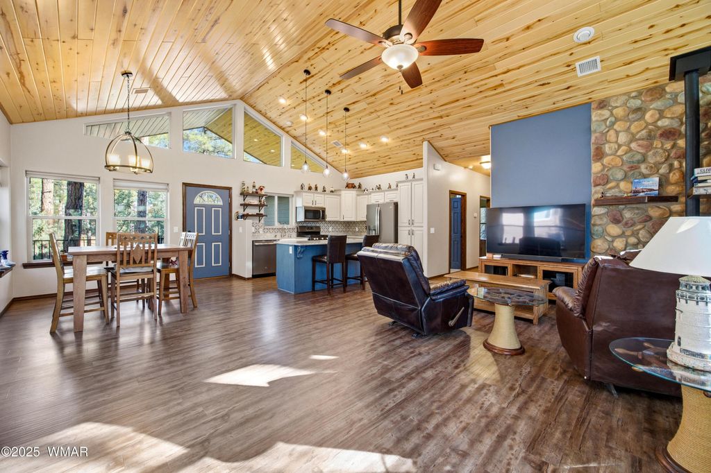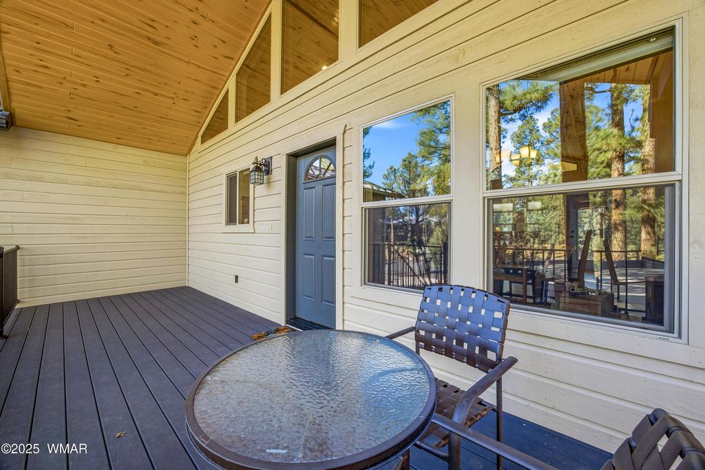 Tucked away in a quiet cul-de-sac surrounded by towering pines, this beautiful 2BD/2BA home blends rustic charm with modern comfort. Enjoy granite countertops, custom Harman knotty oak cabinets, Aspen T&G ceilings, and a cozy porcelain Harman pellet stove. The well-designed kitchen features a gas range and a gorgeous porcelain farmhouse sink. Laminate and tile flooring offer easy care throughout. The extra-tall 2-car garage and bonus storage space below provide plenty of room for all your gear. Relax on the front or back Trex decks with metal railings"”both perfect for soaking in the mountain air. Recent upgrades include a black chain-link fenced back yard, a new gate on the front deck, and fresh exterior paint (June 2025). Peaceful, private, and move-in ready"”this mountain retreat is ideal for full-time living or a seasonal getaway!