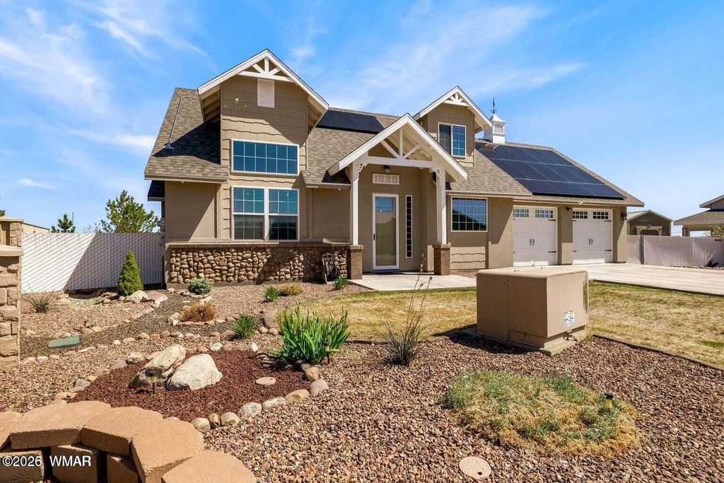 Experience luxury country living in this beautifully designed home where quality and comfort meet. This thoughtfully built residence offers a spacious layout with a main-floor master suite and a large upstairs great room ideal for entertaining or relaxing. The gourmet kitchen features custom maple cabinetry with an Alder island, granite countertops and backsplash, and a premium appliance package valued at over $11,000. Enjoy year-round comfort with split A/C, a recirculation fan, and pre-wiring for surround sound. The oversized garage includes a heating and cooling vent, perfect for hobbies or extra workspace. Relax in fully landscaped yard or enjoy Pioneer Days and 4th of July fireworks from the front porch. Solar will be paid off at closing, offering potential low to zero electric bill.