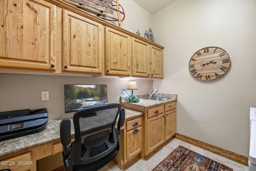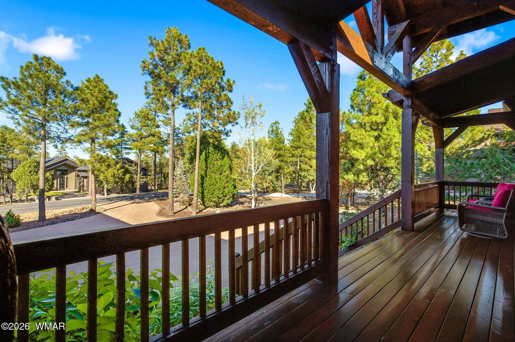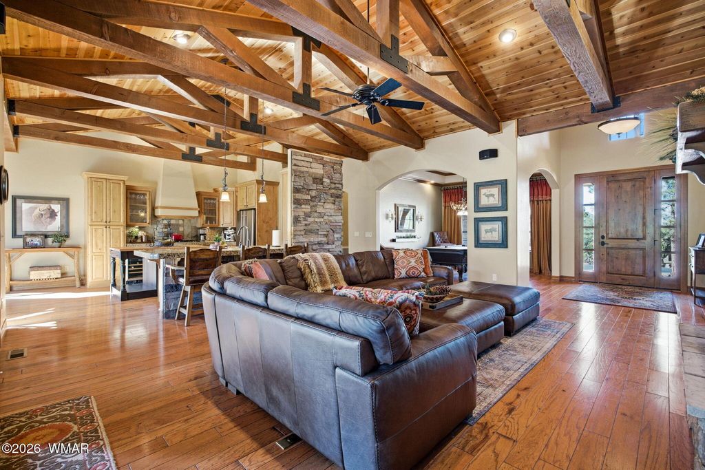 This beautiful home situated on the Tower course in the heart of Torreon Golf Club offers the rare combination of craftsmanship, functionality, and true single-level living that Torreon buyers actively seek. This home is being sold fully furnished, allowing for immediate enjoyment with a true move-in-ready experience. The home spans 2,987 square feet and features three bedrooms, a den, and three and a half bathrooms. Rustic wood beams and custom brackets add warmth and character throughout, giving the home a comfortable and authentic mountain feel. The great room is open and inviting, anchored by a stone fireplace and large windows that capture fairway views and natural light. The kitchen and dining areas flow seamlessly, creating spaces that are equally well suited for quiet everyday living or hosting family and guests. The primary bedroom is privately positioned and opens to a screened-in porch, offering a peaceful extension of the living space and a place to enjoy the outdoors in comfort throughout the seasons. Both secondary bedrooms feature ensuite bathrooms, providing privacy and convenience for guests. The den can easily be converted into a fourth bedroom if desired, while an additional flex space currently used as a pool table room adds versatility for recreation, media, or hobbies. The oversized three-car garage provides ample room for vehicles, storage, and mountain gear. New roof was completed in 2023. Outdoor living spaces overlook the golf course and reflect the relaxed pace of Torreon living, with room to enjoy mornings, evenings, and everything in between. This home offers a well-balanced blend of quality, comfort, and adaptability in one of Torreon's most desirable golf course settings. Owner is licensed to sell real estate in the state of Arizona.