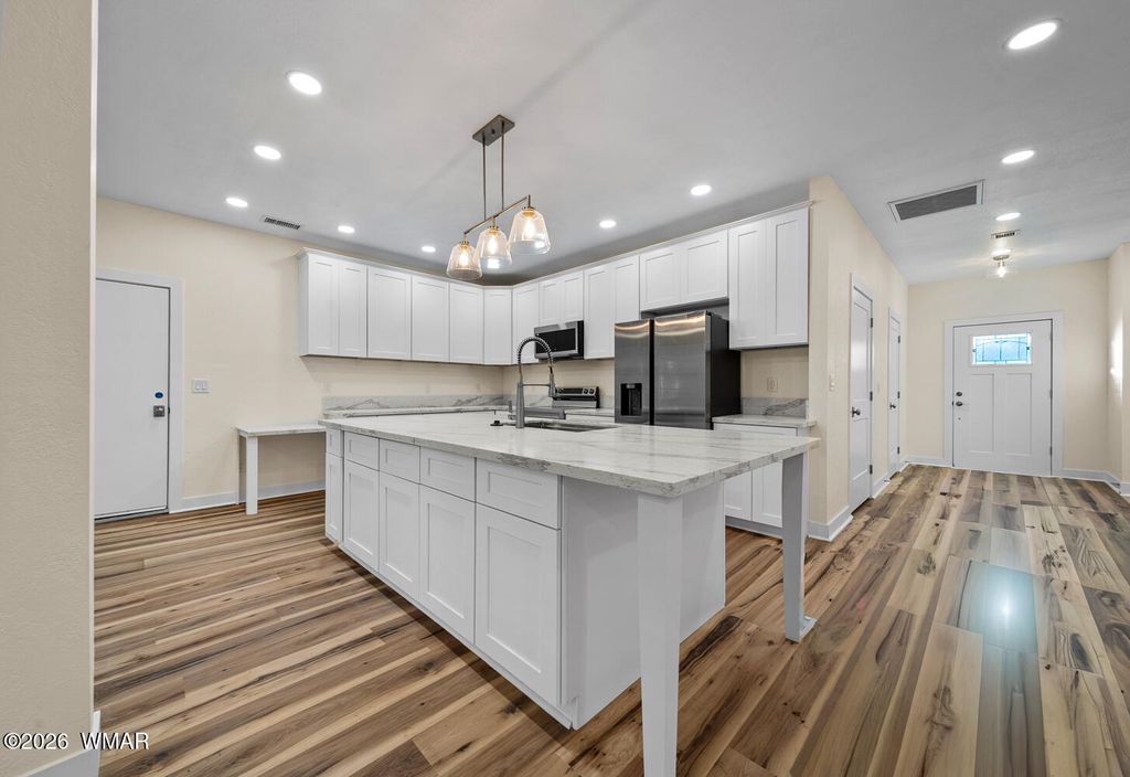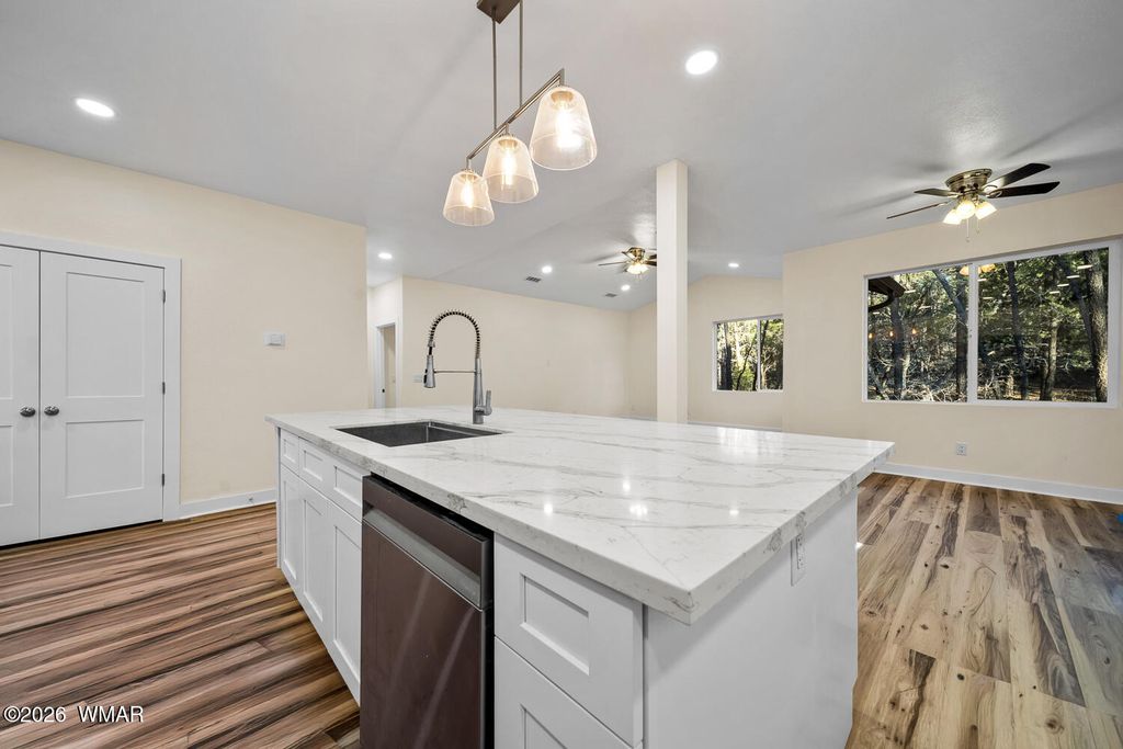 Brand-new construction on a full acre in Lakeside"”where modern comfort meets true mountain freedom! This beautifully crafted home offers an open-concept design with wide-plank flooring, a chef-inspired kitchen with an oversized island, white shaker cabinetry, quartz countertops, and stylish modern lighting throughout. The bright, airy living spaces are ideal for entertaining, relaxing, and everyday living. Enjoy rare privacy with no neighbors behind, a private road, and the freedom of NO HOA. Located near a new middle school neighborhood, this one-acre lot provides endless possibilities for RV parking, a workshop, or future expansion. Experience peaceful mountain living as elk frequently roam the area, all just minutes from town and outdoor recreation.