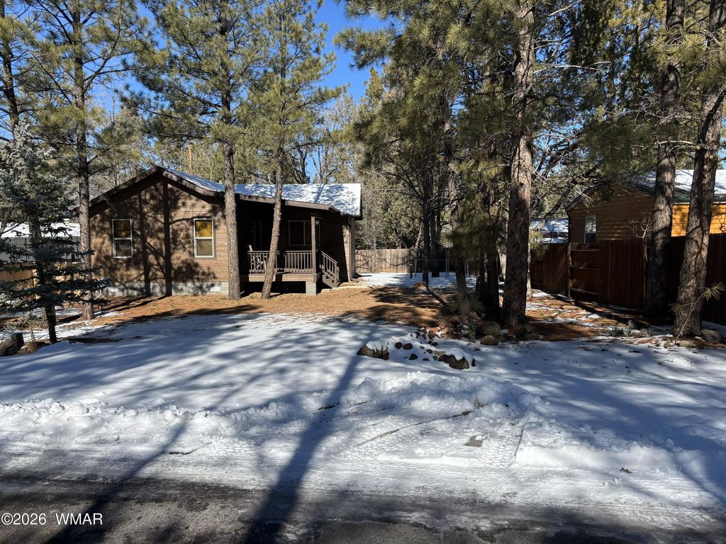 Gorgeous, Site-Built Cabin located in the trees on Pinetop Mountain. This immaculate home is new and features many custom upgrades including vaulted ceilings, paint, wood accents, granite countertops and laminate flooring in the main living areas. Both bedrooms are carpeted. Living room has an electric fireplace for cozy ambience on chilly nights. Also has an inside Laundry Room with stacking washer and dryer. Exterior features an inviting, covered deck and fenced rear and side yards. A separate utility/storage shed is also located on the property as well as RV Hook-up and parking. All of the beautiful furnishings convey with the sale less some personal, listed items. Located in a quiet, well-kept neighborhood with all city utilities and no HOA, this is one you won't want to miss!