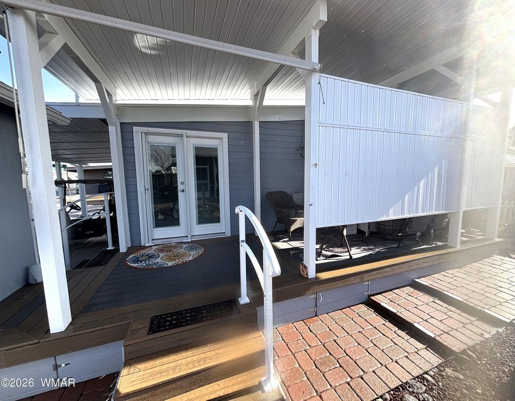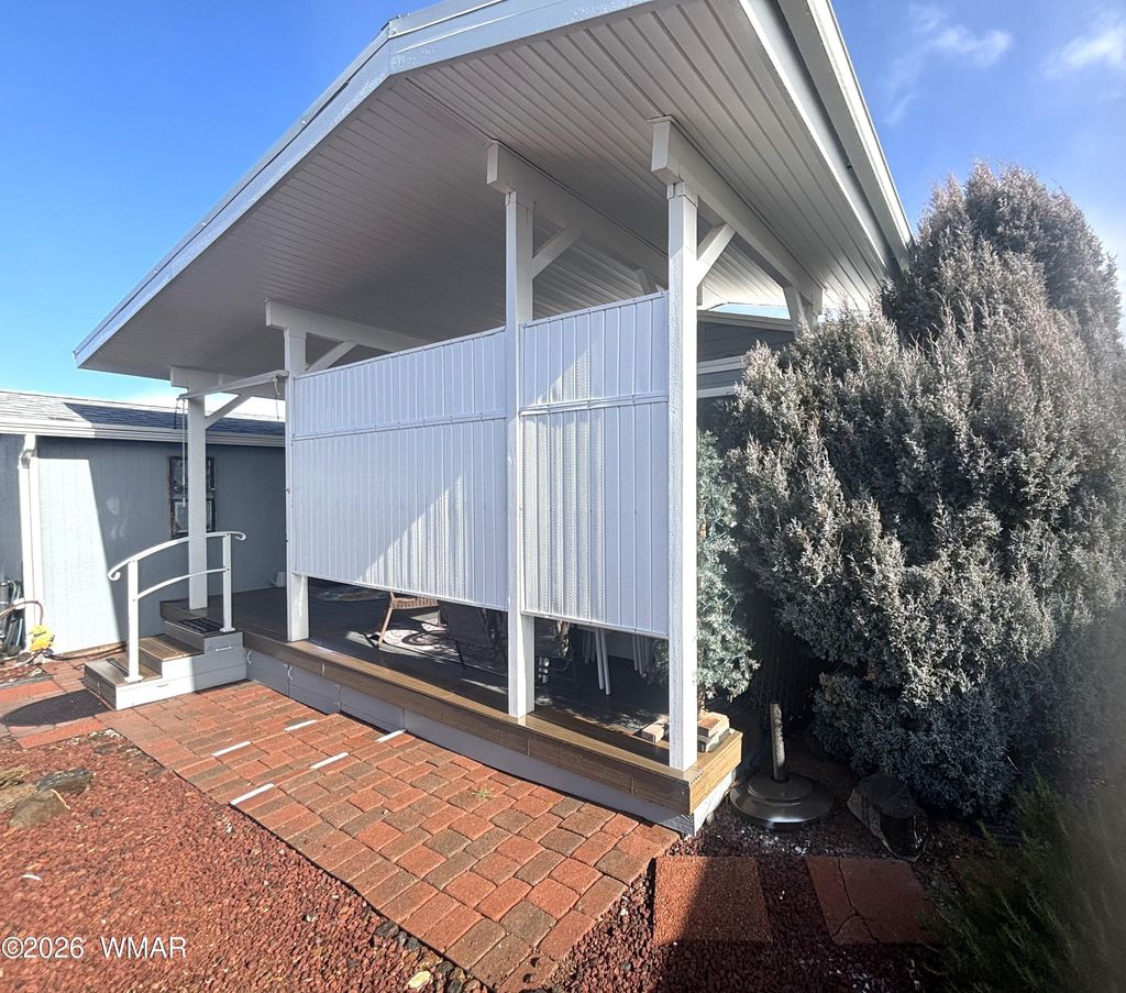 What a charming 2bd/1ba home in desirable Juniper Ridge Resort!! Luxury vinyl plank flooring throughout, corner lot, NEWER Exterior paint, pavers front/side yards, ceiling fans, newer water heater, washer/dryer, open kitchen/dining area, Front window seat with storage, plenty of dual pane windows throughout that allow tons of natural light to come in. Great curb appeal and inviting entry, Long Covered carport w/privacy screen, and shed on the property. Home is in close proximity to the lodge and all the fun activities Juniper Ridge has to offer; e.g., pickleball, golf, pool, dog parks, dances and potlucks galore. Only a short drive to Show Low or Taylor/Snowflake for shopping, hardware and restaurants. Call us today!