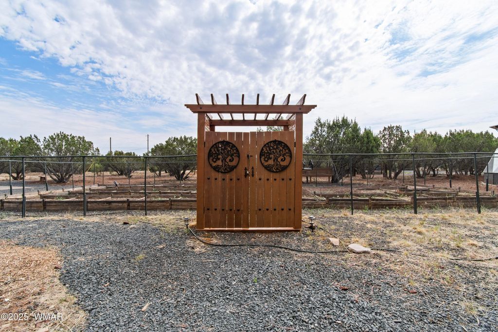 Discover this beautifully remodeled 2,500 sq ft off-grid paradise in Vernon, AZ, set on 10.03 private, level, and tree & meadow-covered acres. Remodel completed in 2025, the residence offers 4 bedrooms and 3 bathrooms with modern updates throughout, blending comfort and functionality. This horse property is fully equipped with a 4-stall horse barn, making it ideal for equestrian use. Additional improvements include a new charming tiny house, a high-end professional greenhouse with an outdoor garden area, and a rare underground root cellar for storage and preservation. The fully-owned solar system is state-of-the-art. Full RV Hookups. The gated entry ensures security & enhances the sense of privacy, while the peaceful setting among the trees and water feature provides a tranquil retreat. There are 2 wells on the property, but only 1 is being used. The exterior siding covers the vertical log work that makes up the exterior walls - highly insulated and most likely bulletproof. While the solar system maintains the home, it's also connected to Navopache Electric.