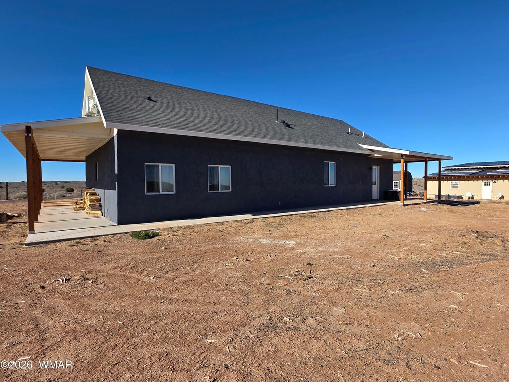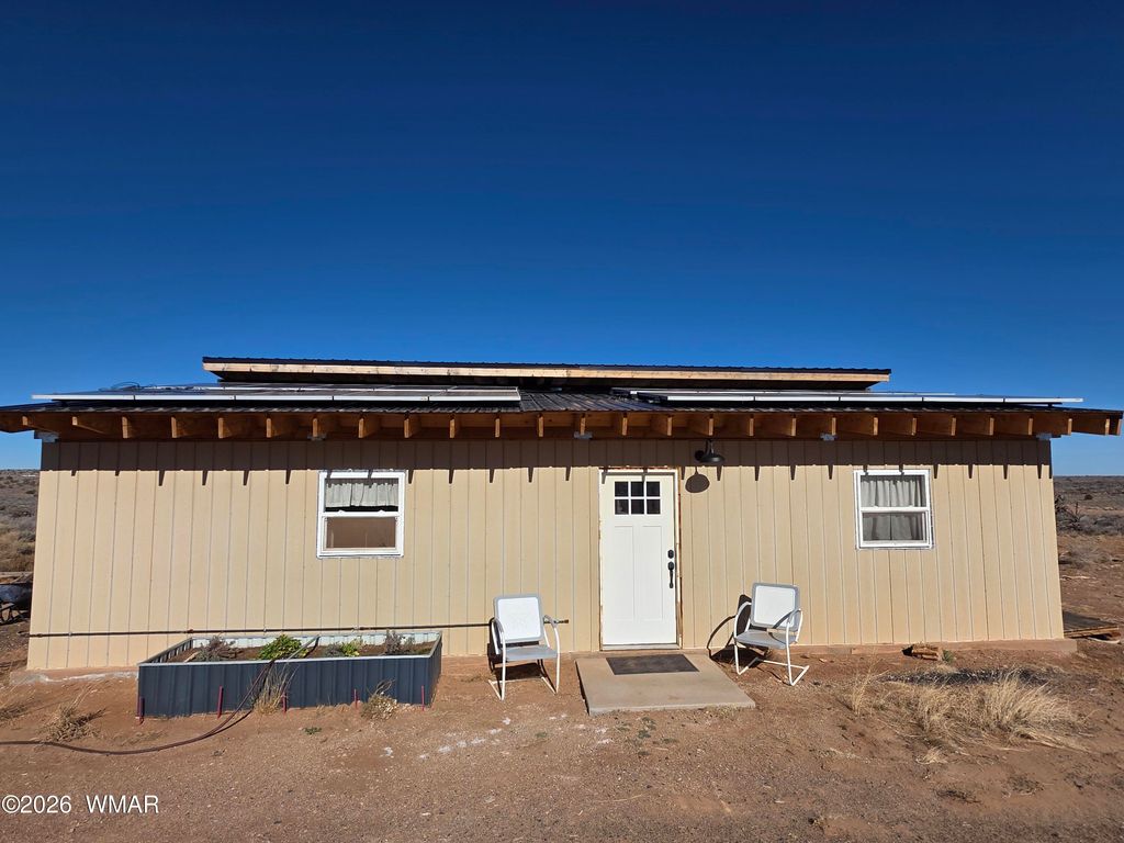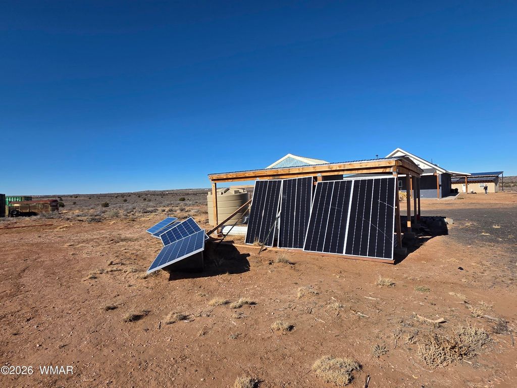 New Build! Owner has lived in this beautifully built 2 story home for less than 6 months. All the hard homesteading work has been done and its ready for you to come enjoy the peaceful quiet with breathtaking views. The property is fully self-sufficient with it's own septic, well and solar. The home was constructed with the Green Rhino system that utilizes foam and concrete to provide both strength and insulation. Concrete floors, trim-less interior and black pipe throughout the home nod to a contemporary minimalism design that makes it feel elegant and fresh. Throughout the downstairs the ceilings are 10 ft. to give it an open luxurious feel. The custom 8 ft. tall doors aid in that feeling. Every aspect of this home was thought out and given thought to. The home was designed with efficiency as there is a geothermal cooling/heating system installed and ready for the new owners to connect if they desire. The house has 4 beds/3 baths, with a master downstairs and family room up stairs. The kitchen is AMAZING! It has a propane commercial double oven range that matches the rest of the stainless steel appliances. Ample storage is provided by the walk-in pantry located next to the utility room that houses the new washer and dryer. Walkout on the wraparound porch and enjoy the panoramic view of the Arizona sunsets or sunrises, whichever you prefer. To supply the home with power there is a solar shed, that houses the batteries and inverters. The solar panels that supply the main home with power are located on top of the 1 bed/1bath guesthouse that can be used as a rental. The guesthouse is fully functioning and has a washer and dryer. It can come furnished as well. Behind the Guest house is a spot where an RV/motorhome can be parked. With a little bit of work septic, power and water could be run to that spot if needed. There is an additional guesthouse that is 90% complete and is up for sale. It could be finished fairy quickly and turned into an additional guesthouse. If the property is not under contract then the owner reserves the right to be able to sell it as well as the 2 shipping containers that are on the property. These were purchased and place so the a barn could be built on top of it. The greenhouse behind the well shed will convey with the property. Inside of the well shed are batteries and inverters to support the well system so that it is completely independent of the home solar system. In case of emergencies a backup generator is available to provide supplemental power. The well is 435 ft. deep after hitting water at 250ft with a 5 in casing. Although the water is good coming out of the well, it passes through a filter as well as a water softener before supplying the house and guesthouse with water. All the day to day details have been taken care of to make sure that the owners have all the conveniences of modern living but with an off grid/self-sufficient lifestyle. It is truly turn key ready and could come furnished desired. The highly motivated Seller is offering a $10,000 credit to the buyers to use for their discretion. The Seller is also willing to pay closing costs. The home is currently being used so appointments are necessary. Bring all offers.
