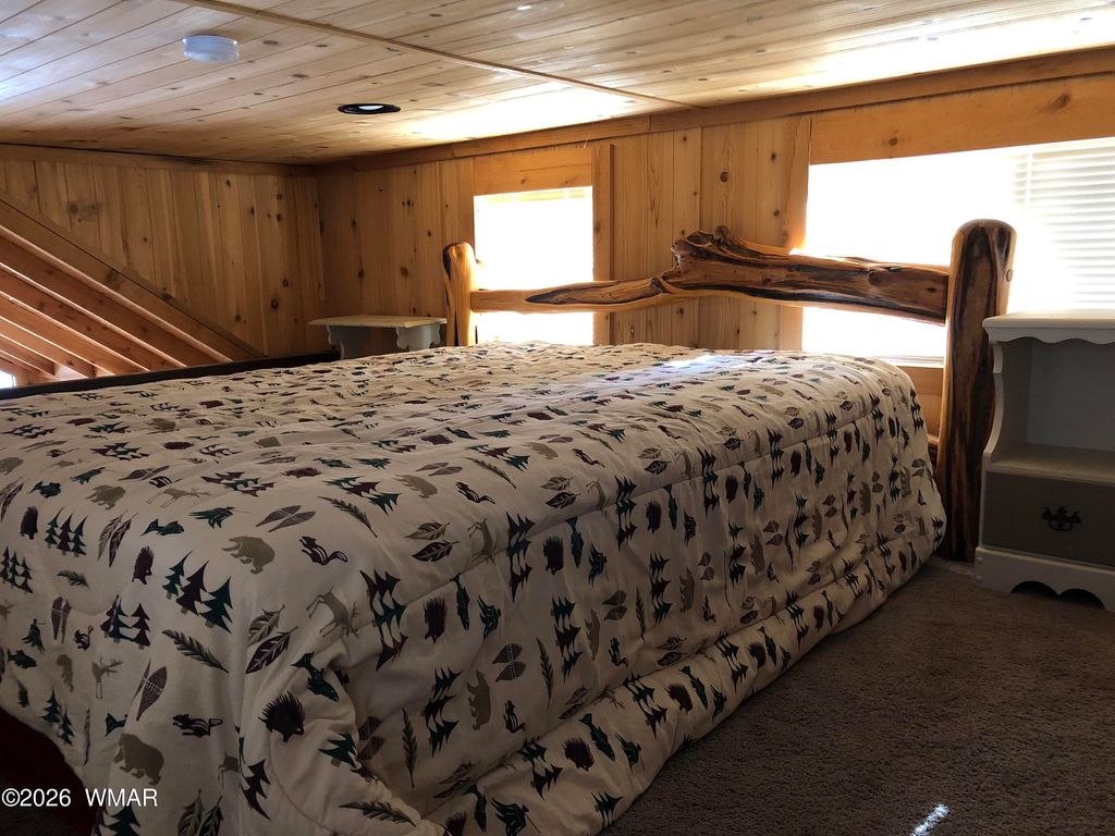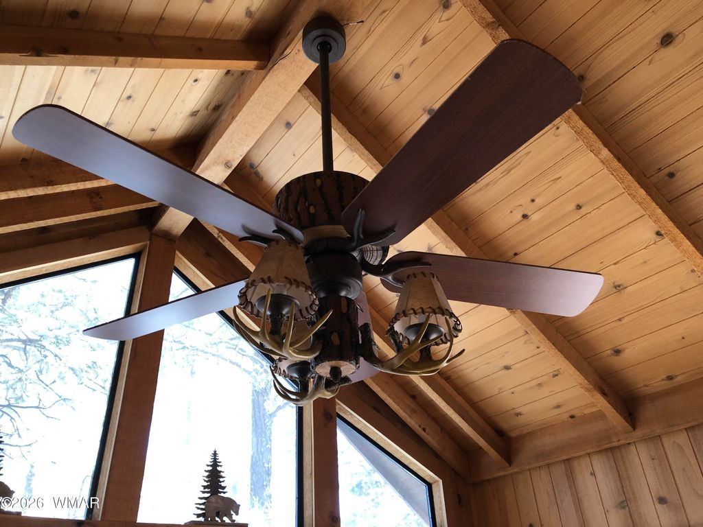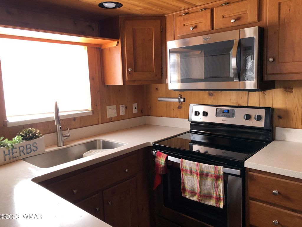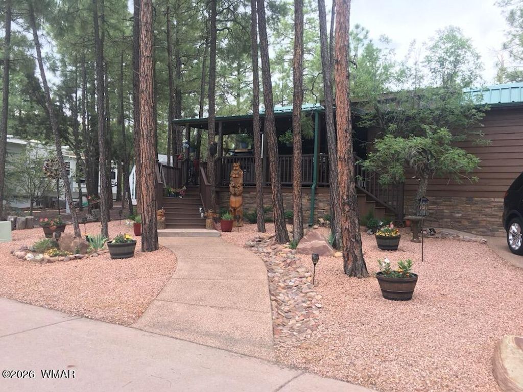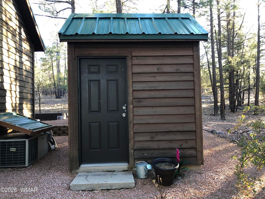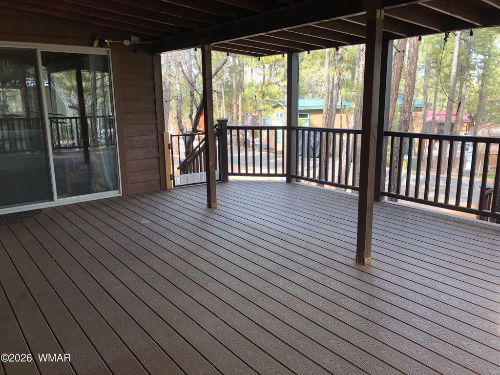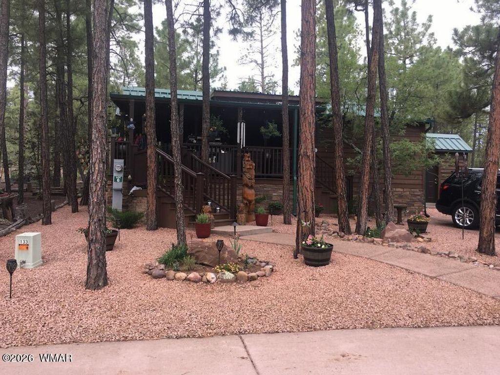 Come join us in the beautiful white capped mountains in the highly desirable White Mountain Vacation Village. As you walk up the steps onto your beautiful large front deck, you will want to sit back and relax and enjoy the views of the green pine trees and breathe in the fresh crisp air. This great cozy cabin is set back against open land with no one behind you except the deer passing through. A custom addition was added in 2017 that adds a large primary bedroom with King sized bed, nice sized mirrored closet and enclosed laundry closet. There is also a loft that has a queen bed with storage and a place for storing more clothing. Kitchen has been upgraded with stainless steel appliances, single stainless sink, and quartz countertop. Plenty of storage space. Fully furnished. Also has a work shed for all your tools. If that wasn't enough, the private backyard is also a great place to be including a garden bed and seating to look at no one but nature. The community itself has so many activities, you will never be bored including events with live music. HOA includes water, trash, internet at clubhouse, and snow plowing of streets