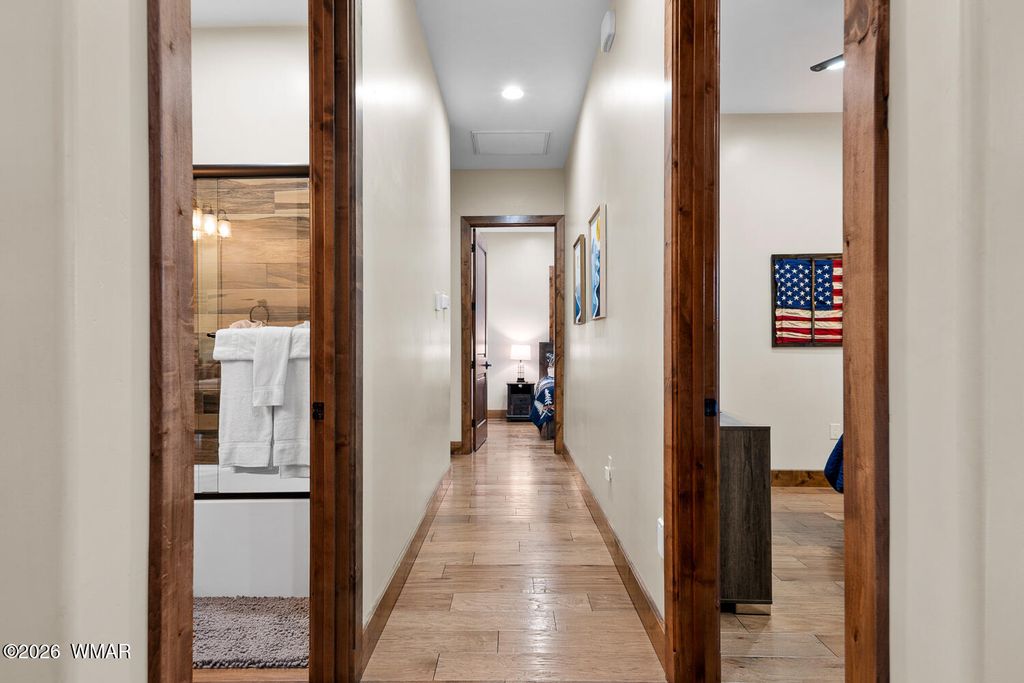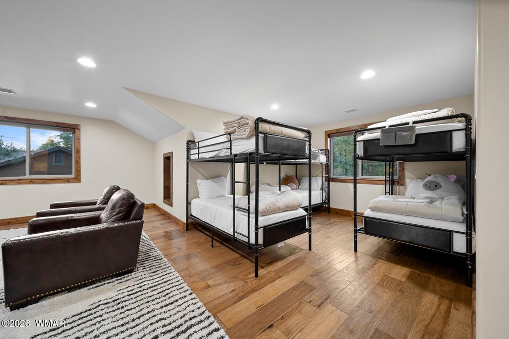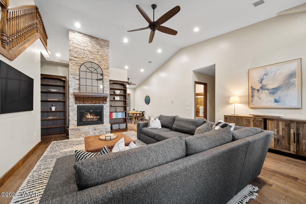 If you've ever said ''we should totally buy a cabin someday'' and then never did, this is your moment. This FULLY FURNISHED retreat sits at the end of a quiet cul-de-sac with State Land to the east and National Forest to the north, which means your backyard will never become someone else's backyard. There is NO HOA, so you are free to live your mountain dreams without a committee meeting. You can literally walk through the forest to Fool Hollow Lake. Fishing, boating, paddleboarding, and pretending you're outdoorsy while still sleeping in a real bed, it's all right there. Let's talk winter, because this cabin understood the assignment. Spray foam insulation, radiant comfort, and a heated driveway so you can watch neighbors shovel snow while you sip cocoa and feel superior. Keep Reading: Two tankless water heaters mean everyone can shower at the same time after the lake without starting World War III. The mud room is huge, because mountains = boots, coats, dogs, kids, and at least one stick someone insists on keeping. Solid-core 8' knotty alder doors and matching trim everywhere, so even when you're wearing sweatpants, your house still feels fancy. Bedrooms are oversized, because we're done pretending adults want to sleep in tiny bunk rooms. Upstairs is a massive bonus space that doubles as a second large gathering space while offering TONS of extra sleeping options for your guests! The garage is oversized because regular garages are for people who don't own cool mountain toys, and behind it is a full workshop/bonus room/extra bedroom with 200 amp service for projects, hobbies, or that phase where you convince yourself you're "about to get really into woodworking." Outside, you've got a tiled front porch with faux timbered peaks for ultimate cabin vibes, a fully fenced backyard, SO. MANY. TREES., and a covered patio for grilling, chilling, and dramatically watching wildlife stroll by. And yes, wildlife strolls by. Frequently. It's rude how peaceful it is. Currently operating as both a successful vacation rental and personal mountain retreat, this cabin is being sold fully furnished and ready to go on day one. No shopping trips, no setup, no "we'll get to that later" projects. Just show up with your PJs and your toothbrush and start pretending you have always lived like this. Oh, and it's being offered BELOW RECENT APPRAISED VALUE, which is real estate speak for "someone's getting a crazy deal and it might as well be you." No HOA. State and federal land on two sides. Walk to the lake. Heated driveway. Huge garage. Bonus rooms. Huge bedrooms. Turnkey short term rental. Sold fully furnished. If this checks your boxes, great. If it doesn't, you might need more boxes. Come see it before someone else buys it and starts calling it "our place" in every group chat and Instagram post!