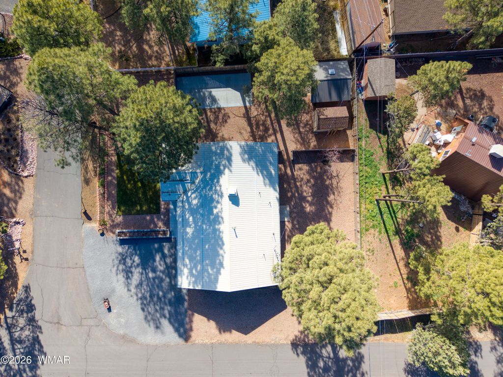 Welcome to your cozy retreat in the Show Low Country Club with NO HOA! This beautifully updated single-family home blends comfort, efficiency, and modern convenience on a generous corner lot, perfectly positioned for easy everyday living. Step inside to discover a warm and inviting living space filled with abundant natural light from all-new high-efficiency Andersen windows and a new sliding glass door, complemented by fresh interior paint and all-new LED can lighting with nightlight features throughout. The bright living room flows seamlessly into the kitchen, now enhanced with a new refrigerator, dishwasher, and RO drinking water system, making it ideal for casual meals or entertaining guests. This thoughtfully upgraded home offers three comfortable bedrooms and two full baths, supported by major behind-the-scenes improvements including all-new PEX plumbing, a new tankless water heater with recirculation, water softener with whole-house filtration, new HVAC system, and a new electrical breaker panel providing peace of mind, efficiency, and long-term savings. The enclosed front porch features a stunning tri-fold glass door, creating a flexible space to enjoy year-round. The garage is equally impressive with a mini-split system, attic ladder with storage, and a dedicated hot tub circuit with GFCI breaker already in place. Outside, enjoy the convenience of a new concrete RV pad with double gate access and a 30-amp RV outlet, plus a holiday light outlet for easy seasonal decor. Mature landscaping and ample yard space offer room for relaxation, gardening, or future outdoor upgrades whether that's a garden oasis, BBQ area, or hot tub setup. Located just minutes from local conveniences, schools, parks, and community amenities, this move-in-ready home delivers both charm and extensive modern upgrades. Don't miss your opportunity to own a truly turnkey property in Show Low!