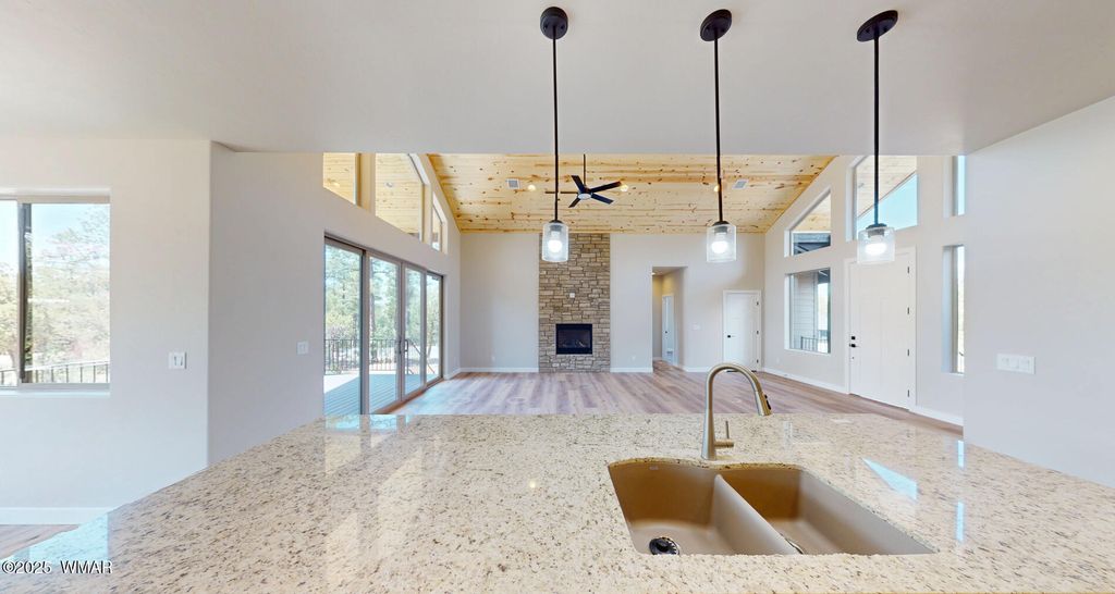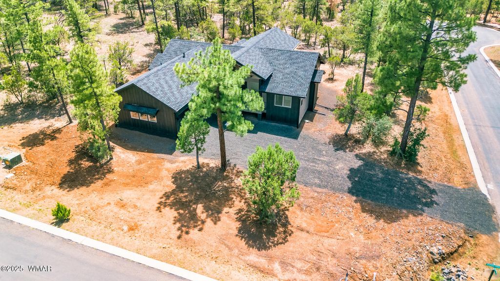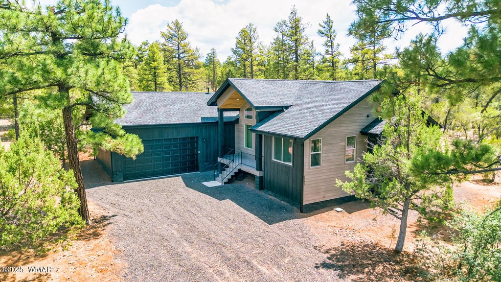 New custom home in the Torreon-Lakes community, built by Dean Allen. This 3-bedroom, 2-bath home offers an open-concept layout with vaulted ceilings and a gas fireplace, creating a bright and functional living space. The kitchen includes a large pantry and plenty of counter space, while the private primary suite offers a quiet retreat. LP Smart Siding with black accents and Trex decking provide low-maintenance outdoor living in a beautiful mountain setting. Energy-efficient construction and quality finishes throughout make this home ideal for full-time living or a seasonal getaway. Located in one of Show Low's most desirable communities with access to Torreon amenities, including golf, fitness, trails, and more. Move in Ready