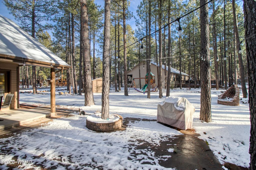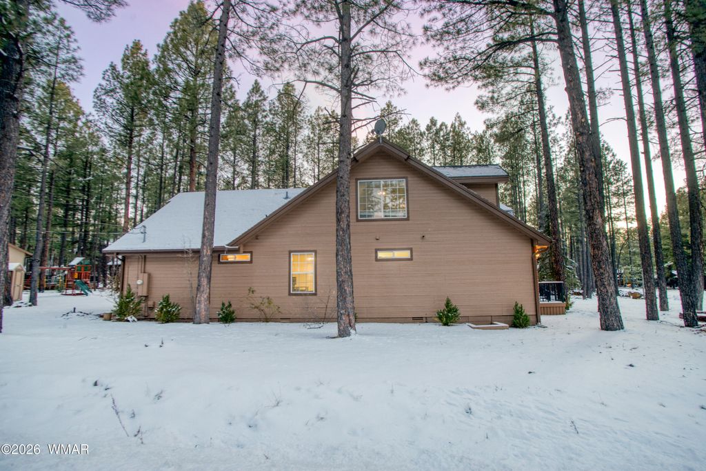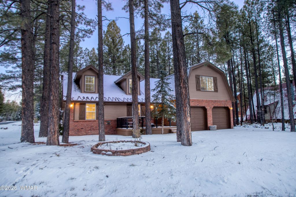Set among towering pines on a private 0.31-acre corner lot, this exquisitely furnished 5-bedroom, 3-bath mountain estate is located in the highly coveted Pinetop Lakes Country Club and includes Rec Center privileges. Designed to deliver both refined comfort and timeless mountain elegance, the home showcases custom craftsmanship throughout, including stone countertops, rich custom wood cabinetry, and a curated blend of carpet, tile, and wood flooring that balances warmth with durability. Multiple expansive living areas create an ideal setting for both intimate moments and large gatherings, all centered around a stunning wood-burning fireplace that defines the true mountain-home experience. The thoughtful floor plan offers oversized bedrooms throughout ** READ MORE ** Having the oversized bedrooms provides extra comfort and exceptional flexibility for hosting guests, creating private retreats, or accommodating multi-generational living. Upstairs, a secondary Great Room elevates the home's livability even further. Perfect as a game loft, family lounge, or entertainment hub, this space is complete with a wet bar, sink, and mini-fridge and could easily be converted into a kitchenette, making the home ideal for multi-generational living or extended stays. Generous storage is found throughout the home, complemented by an additional exterior storage shed for seasonal and recreational gear. Outdoor living is equally impressive, with a welcoming deck that draws you into the home, a covered patio ideal for enjoying the cool, crisp mountain air, and an inviting firepit designed for unforgettable evenings with friends and family under the pines. The peaceful setting offers privacy, tranquility, and a seamless connection to nature while remaining close to the premier amenities of the country club, including golf, dining, and vibrant social offerings. Offered fully furnished and truly turnkey, this exceptional mountain residence presents a rare opportunity - whether as a luxurious full-time home, a refined family retreat, or an investment property. With space, privacy, and endless possibilities, this is mountain living at its finest. * There is an uninstalled Window Unit that the current homeowners purchased for the upstairs, but found that they didn't need it; therefore, it's still unused. The home is nestled in the desirable setting of Pinetop Lakes Country Club, a scenic golf and country club community in the White Mountains of Arizona. The neighborhood is defined by its picturesque pine-lined landscape and close access to golf and outdoor recreation. Just a short drive away, members and guests can enjoy Pinetop Lakes Country Club, an 18-hole golf experience that winds through tall ponderosa pines and offers a welcoming clubhouse with casual dining and bar areas overlooking the course, perfect for socializing after a round of golf. Residents who choose to explore additional private club amenities will also find the nearby Pinetop Country Club, known for its championship 18-hole golf course, tennis and pickleball courts, practice facilities, newly renovated clubhouse with fine dining and lounge areas, and a full calendar of social events. The club atmosphere is centered around community, relaxation, and lifelong memories amid scenic mountain surroundings. Living in Pinetop Lakes Country Club means you're also close to abundant outdoor activities year-round, including hiking, fishing, skiing, and lake recreation, all set against the backdrop of cool mountain air and beautiful forested terrain. Discover the White Mountains of Arizona - where adventure, beauty, and fresh mountain air come together. Enjoy four stunning seasons, 40 lakes, and 600+ miles of rivers and streams, perfect for fishing, kayaking, and exploring. Hit the trails on one of the largest trail systems in the Southwest, or spend winter days at Sunrise Ski Resort, just 40 minutes away with three mountains of skiing, snowboarding, and sledding. Love shopping or cultu