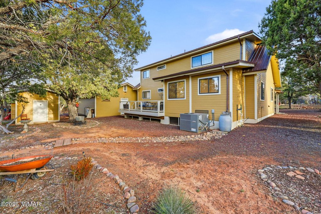Relaxed, private mountain living in coveted Cheney Ranch! This charming 3-bedroom, 2-bath cabin-style home sits on a treed 1-acre lot offering true four-season enjoyment. Features include a cozy wood-burning stove, granite counters, and warm rustic finishes throughout. Enjoy front and back decks plus an inviting outdoor entertaining area"”perfect for gatherings under the pines. Property includes back up generator, three outbuildings, a garden area, and a heated 2-car garage. Ample parking for large RV's and toys as well as a full property irrigation system. Close to nearby golf courses while maintaining peaceful seclusion. Your mountain retreat awaits! Furnishings available with excellent offer or separate Bill of Sale.