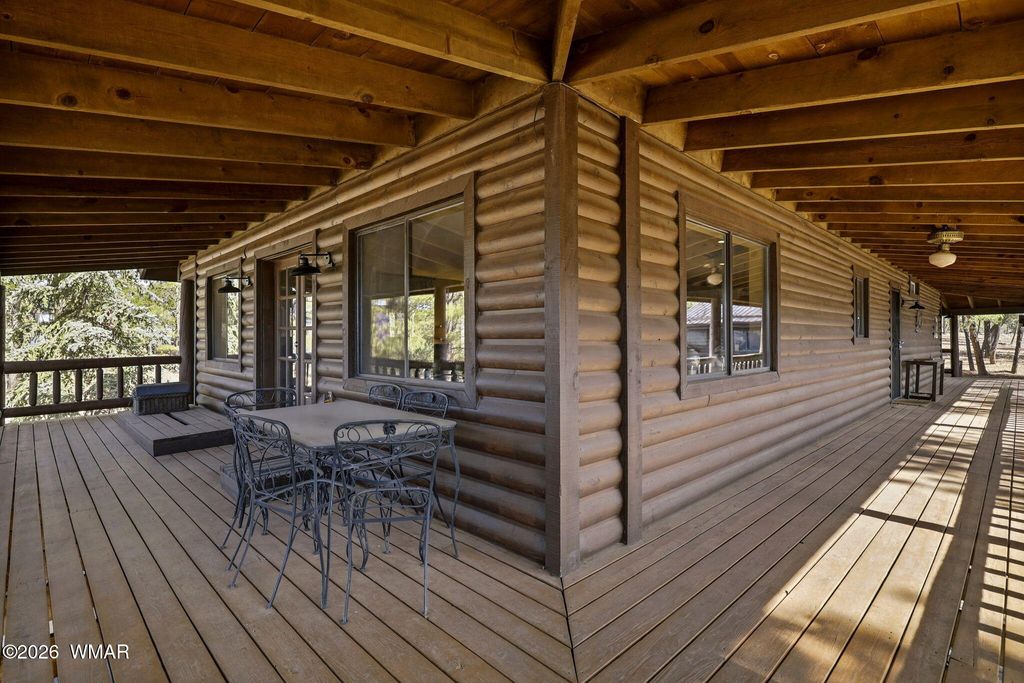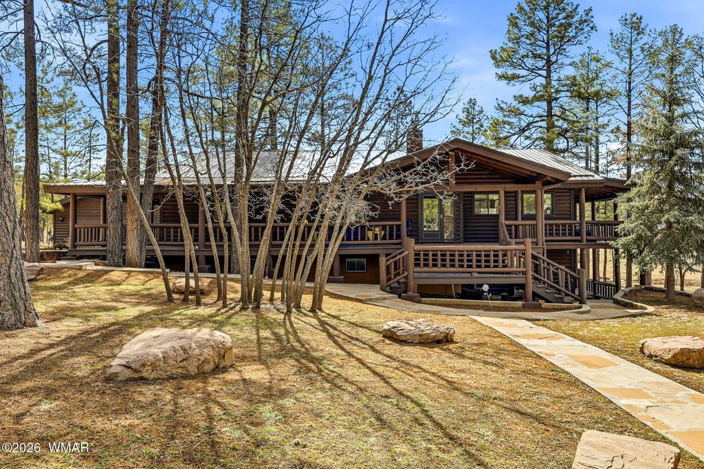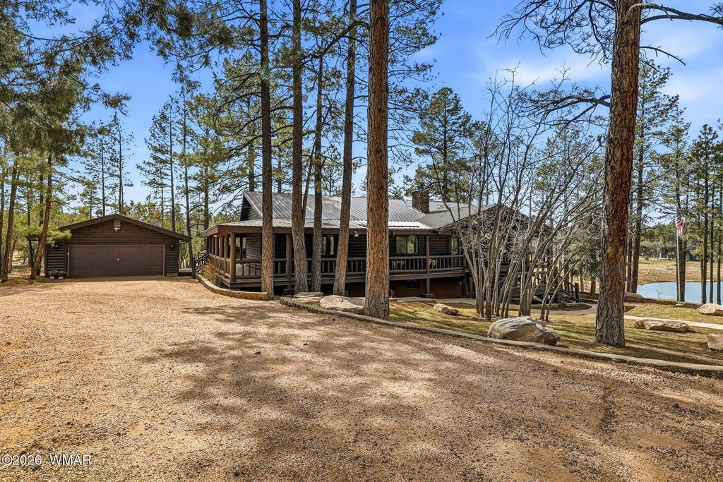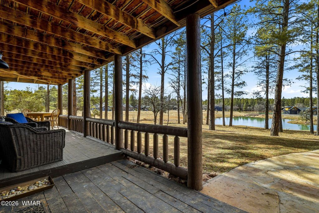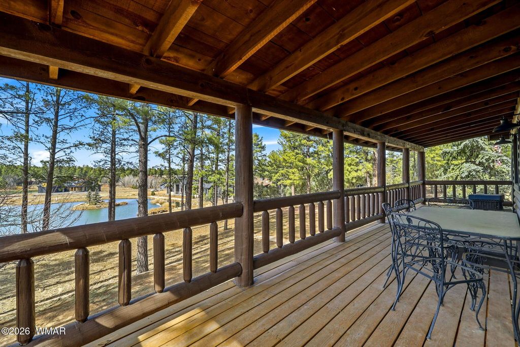 Rare 2.2 Acre Cabin in Prestigious Torreon - Water Views, Stream & Investment Potential Opportunities like this are rare. This unique 2.2-acre homesite offers nearly double the land while paying only one HOA. Privacy, space, & natural beauty come together in a way that cannot be recreated today. This 3,008 sq ft log cabin delivers mountain charm with expansive decks designed to take in the beautiful pond & stream views. Wildlife can be seen gathering near the water, creating a setting that feels like your own private retreat. Inside, the home offers 4 bedrooms, 3 baths with a flexible two-level layout that can function as one residence or be utilized separately "” presenting potential as an income-producing property or multi-generational getaway. The main level features an open concept living area with a wood-burning stove. The kitchen is well-appointed with a large island, generous counter space, & ample cabinetry. The primary suite has a walk-in closet, dressing area, dual vanities, jacuzzi soaking tub, & separate shower. An additional full bath completes the main level. The lower level offers a second large living area with its own wood-burning stove, three additional bedrooms, a full bath, & laundry area ideal for guests or rental flexibility. While the exterior could benefit from some updating, the value opportunity here is undeniable. Offered at just $875,000, this is an exceptional chance to own acreage, water views, & a true cabin experience in one of Show Low's most sought-after communities. Space. Water. Privacy. Potential. Properties like this rarely hit the market.