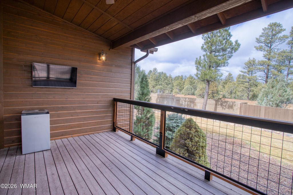Beautifully designed mountain retreat in the highly sought-after, gated Bison Retreat community, just minutes from Fools Hollow Lake! This 3-bed, 3-bath home offers two private ensuites plus a versatile loft, providing flexibility for full-time living or the perfect lock-and-leave getaway. The open-concept great room features rich hardwood floors, a stunning tongue-and-groove ceiling, and a floor-to-ceiling stone gas fireplace. Large sliding glass doors lead to a covered balcony deck--ideal for enjoying cool mountain air and peaceful surroundings. The kitchen was fully remodeled in 2025 and shines with new appliances, custom cabinetry, granite countertops, designer tile backsplash, updated lighting, and a spacious island with pendant accents. The dining area flows seamlessly into the great room, making entertaining effortless. The downstairs primary suite features a beautifully appointed ensuite bath with dual vanities and a large walk-in closet. The second ensuite offers excellent guest privacy with a unique layout including a private vanity area and dual closets creating a hallway transition into the bedroom. A detached single-car garage provides added convenience and storage. Located within Bison Crossing, a gated master-planned community in Show Low, residents enjoy quality construction, paved roads, tall pines, and close proximity to Bison Golf Club. Experience the best of the White Mountains lifestyle with four distinct seasons, cooler summer temperatures, and easy access to golf, hiking, fishing, lakes, shopping, dining, and medical services. Bison Retreat living at its best! Discover the White Mountains of Arizona--where adventure, beauty, and fresh mountain air come together. Enjoy four stunning seasons, 40 lakes, and 600+ miles of rivers and streams, perfect for fishing, kayaking, and exploring. Hit the trails on one of the largest trail systems in the Southwest, or spend winter days at Sunrise Ski Resort, just 40 minutes away with three mountains of skiing, snowboarding, and sledding. Love shopping or culture; wander through antique shops, summer arts & craft fairs, and lively music festivals. Golfers can tee off at seven scenic courses, including three public gems. It's no wonder Pinetop-Lakeside was voted the "Best Cabin Region in the U.S." The White Mountains--Arizona's best-kept secret. Come explore and embrace the MAGIC!