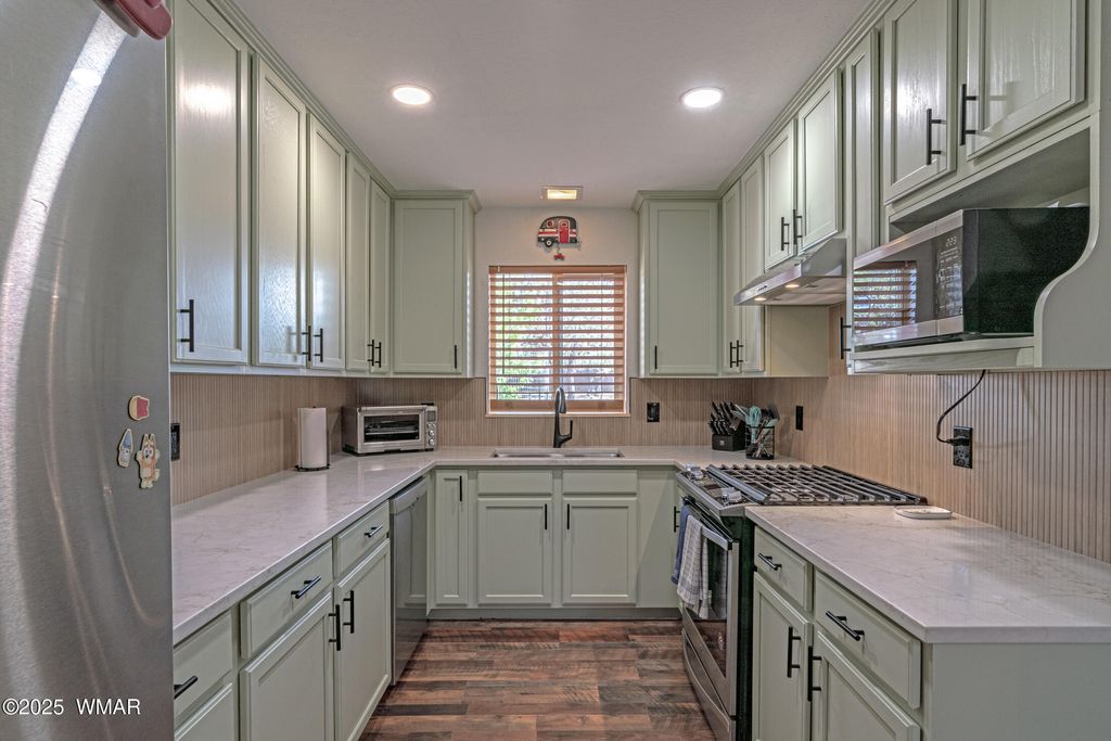Freshly remodeled in 2024 and move-in ready, this stunning 3 bed, 2 bath home in the pines and junipers in the absolute heart of Lakeside sits on 1.25 acres of horse-friendly land with a private well and no HOA and A brand-new master suite addition (approx. 600 sq ft) New interior upgrades include 3 mini splits spread throughout the home for efficiency and zone friendly cooling/heating, quartz counter tops in the kitchen and on the newly installed wet bar/drink station complete with it's own sink and wine fridge, all flooring through out the home updated to match seamlessly in every room, fresh paint on all of the interior and exterior, all new appliances (washer, dryer, refrigerator, dishwasher, gas oven/range, microwave etc), matching ceiling fans have been installed throughout the home. Exterior upgrades include high quality paint on the home and well house, now hooked up to natural gas plumbing (previous setup was all electric and no gas at all), thorough and meticulous landscaping on all trees and shrubs on the property, tons of rocks have been removed from the ground and the yard has been leveled making it easier for your four legged friends and human friends alike to enjoy the open space with confidence, 5 year old matured maple and aspen trees are in the ground and ready to provide further shade and privacy in the future! Plenty of room on this huge property so bring your horses, friends and family, rv's, toys, trailers etc and start making your own memories today!