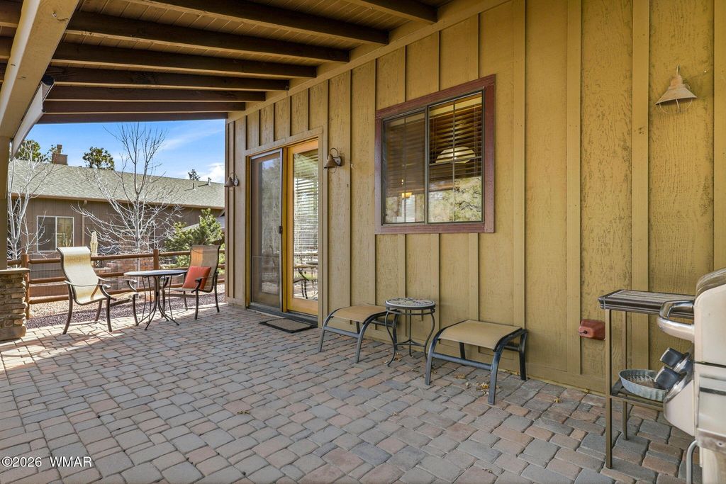 Beautiful townhome in a gated community in the heart of Lakeside! This thoughtfully designed home features an open-concept layout with a vaulted tongue-&-groove ceiling accented by gorgeous wood beams. The living room has a floor-to-ceiling stone fireplace, creating a warm & inviting space. The kitchen & living areas flow seamlessly for comfortable everyday living or entertaining. Flooring includes hardwood in the main areas, tile in the bathrooms, & carpet in the bedrooms. A dedicated office provides great flexibility & could easily be converted to a third bedroom if desired. Step outside to the back patio with paver seating area & peaceful views of the pine trees. Ideal for full-time living or a low-maintenance second home. Some furnishings convey--ask agent for details.